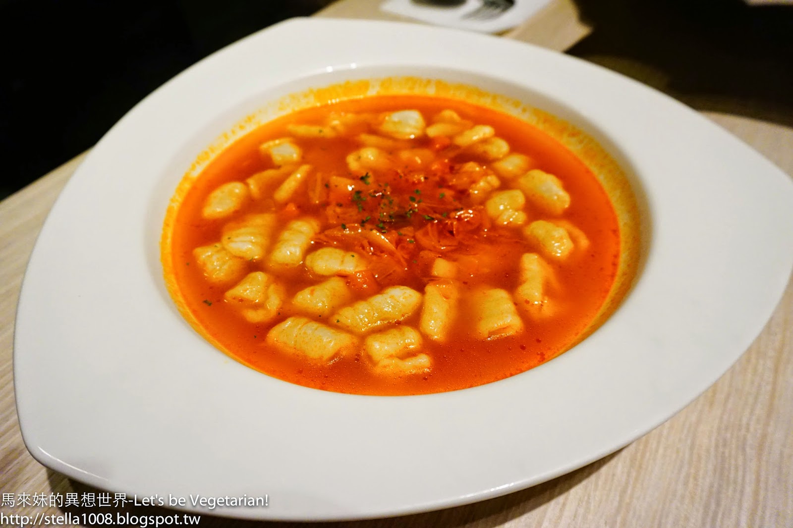 醬醬~下面這盤就是Gnocchi義大利紐奇~盛裝在一個三角形的碗裏~