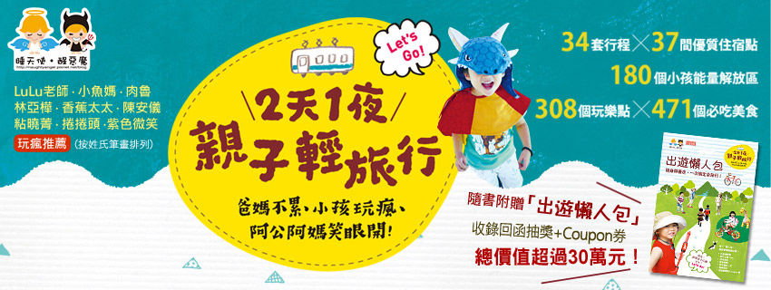 想知道更多住宿優惠嗎?新書「2天1夜親子輕旅行:爸媽不累、小孩玩瘋、阿公阿媽笑眼開!(隨書附贈超值出遊懶人包)」,內有住宿Coupon哦~~網路書店熱賣中