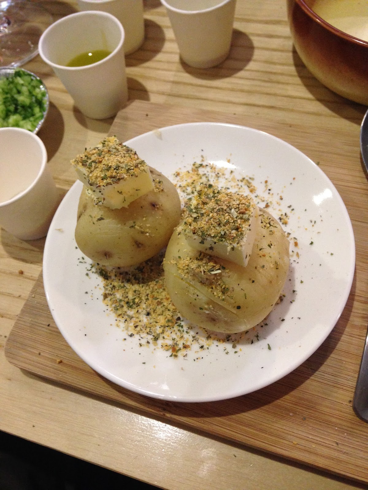 最後把優格醬淋在烤好出來的馬鈴薯上