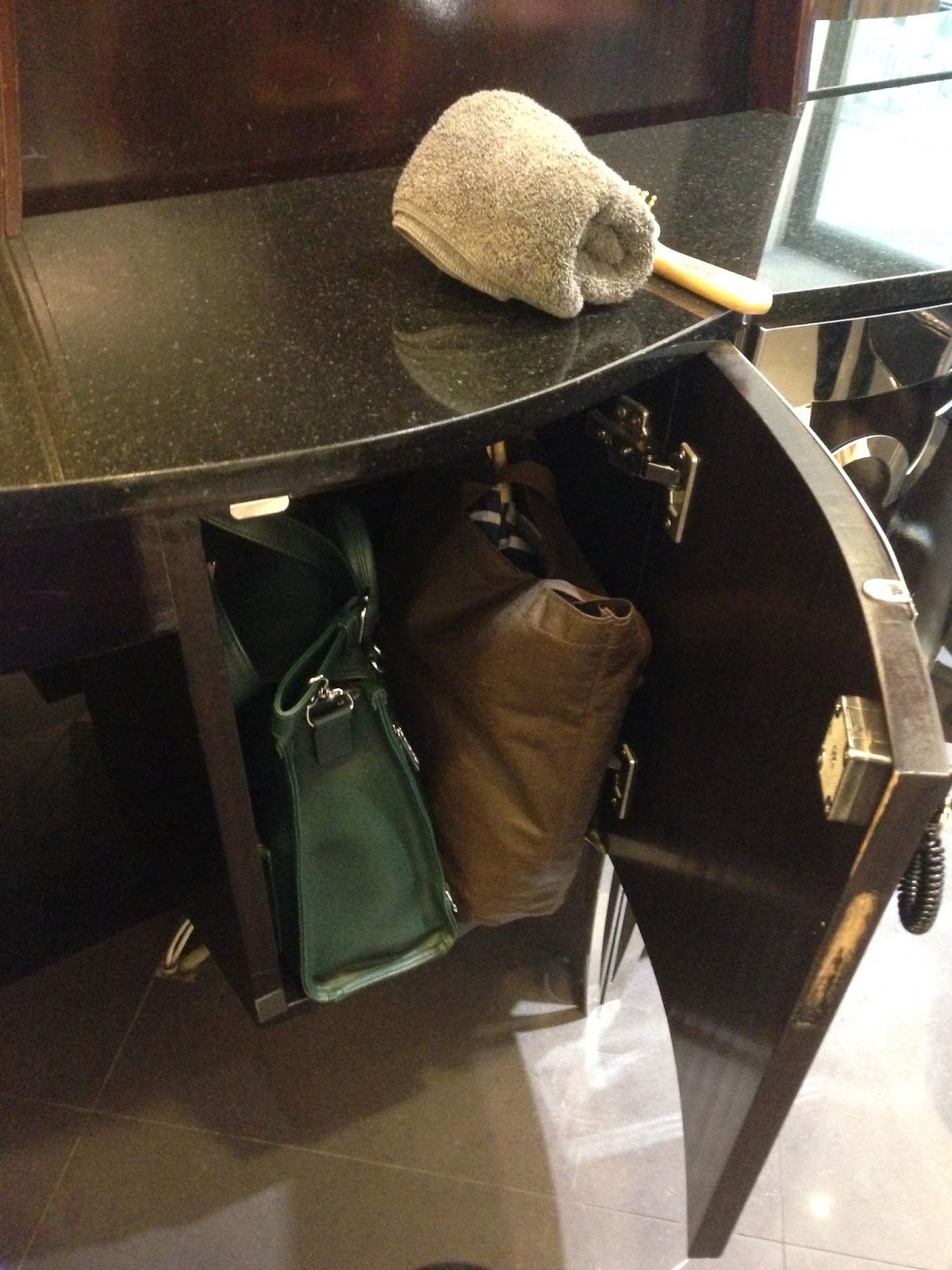 這樣就算要去洗頭區洗頭時也不用擔心東西會不見