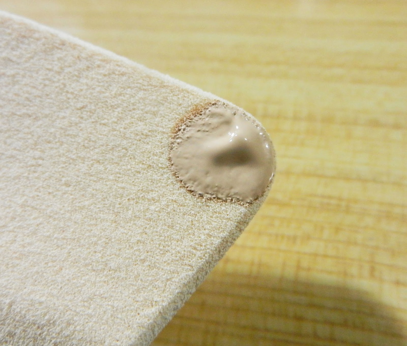 接著使用粉撲將粉底液均勻塗至臉上
