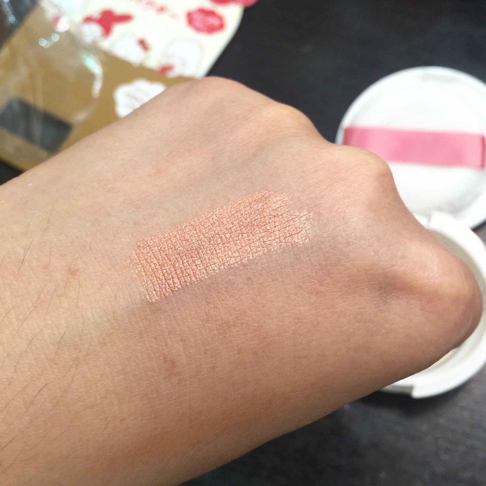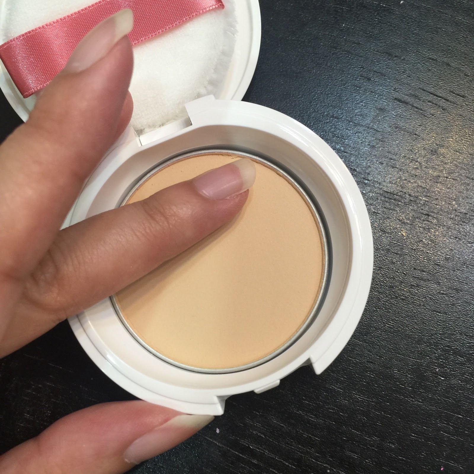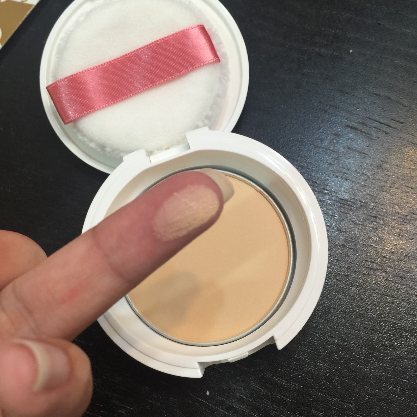 它有2個顏色. 粉質是蠻細的.不過粉壓得不夠實. 粉樸或是碎粉掃掃一掃就很飛粉.