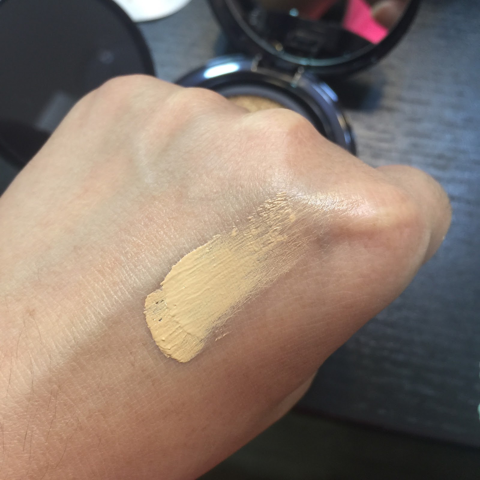 保養化妝 2016-09-12 05:36:00 Estes Lauder ~ Double Wear 8小時持久 BB Cushion 最近買了一個超級棒的Cushion 就是Estes Lauder 的Double Wear 8小時持久 BB Cushion 這不是剛剛新推出的BB Cushion 已經有不少Blogger力推它。 我就在8月中的時候就買了。 海棉洞比較大。粉樸取粉會比較多一點點。 大家要小心。 這個粉樸是我那麼多的Cushion粉樸當中最好用的。 它的密度高之餘壓粉力很好。 上粉感覺可幾遮蓋毛孔但不厚妝。 這個BB Cushion 具備了Double Wear皇牌粉底的長效功能, 8小時不脱妝! 同時更具保濕˴ 防曬˴ 光澤˴ 控油˴ 中度遮瑕等功效, 說真的它真的是做到。 而且妝感不厚,屬於輕妝感。 我買了比自已膚色淺少少的顏色。看起來面部會比較亮白及有立體感。 全面已上BB Cushion