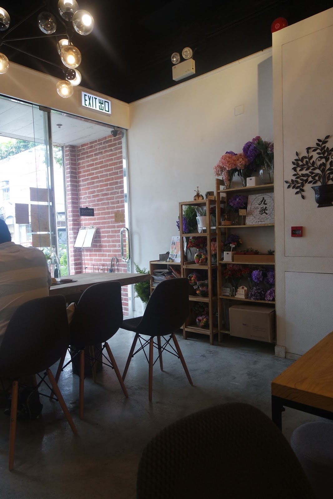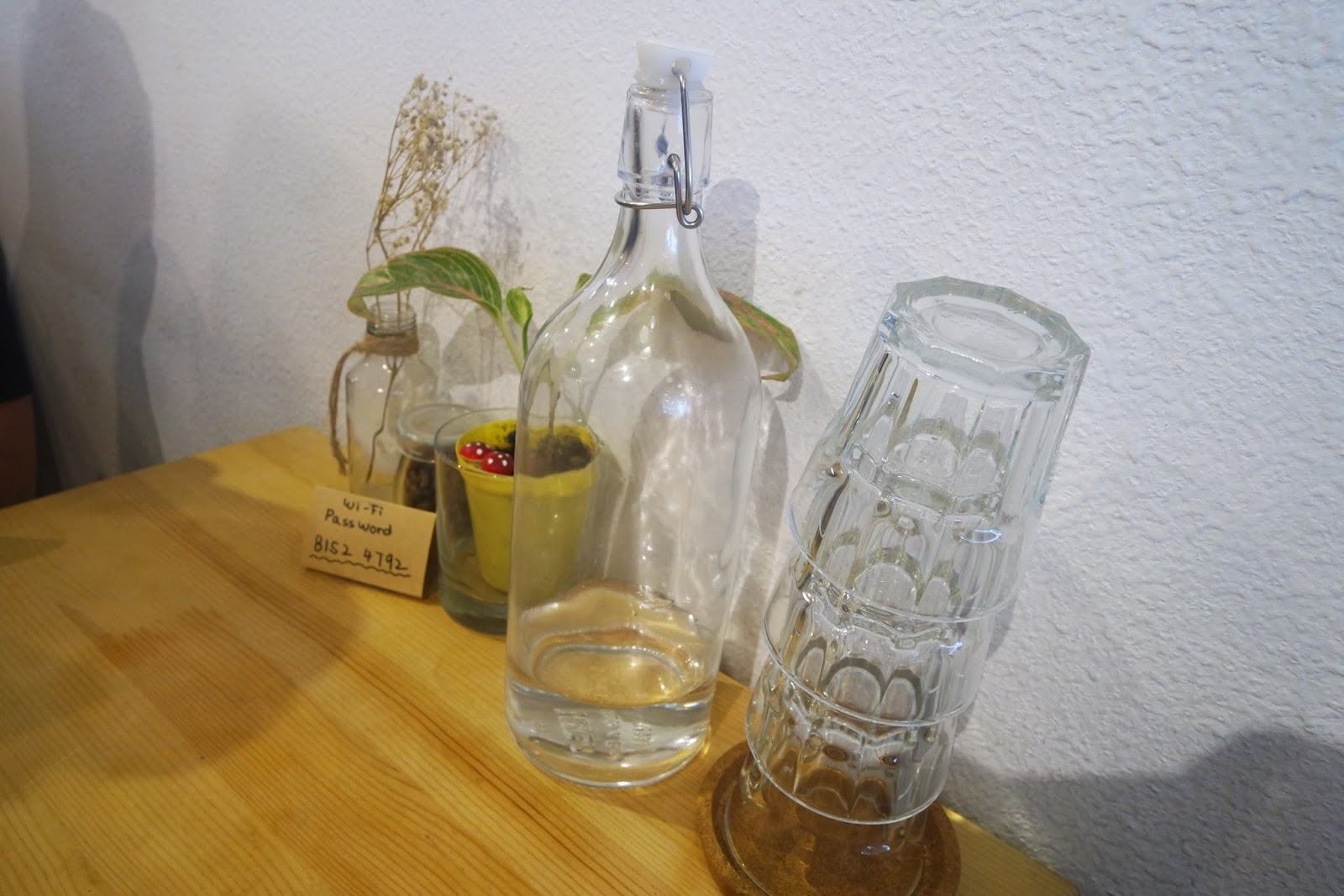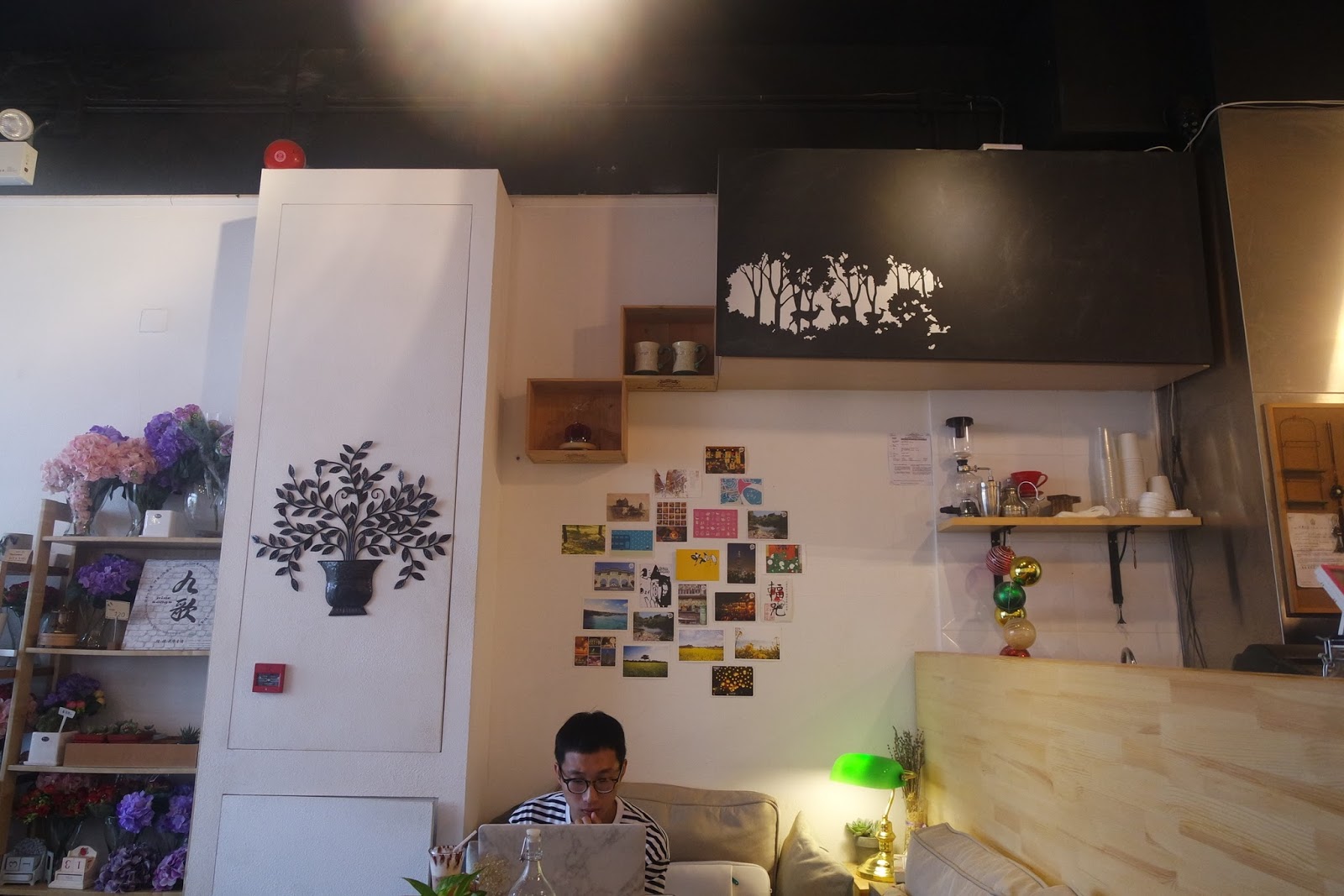 裡面裝潢簡約。很多木製,玻璃瓶和花的擺設。