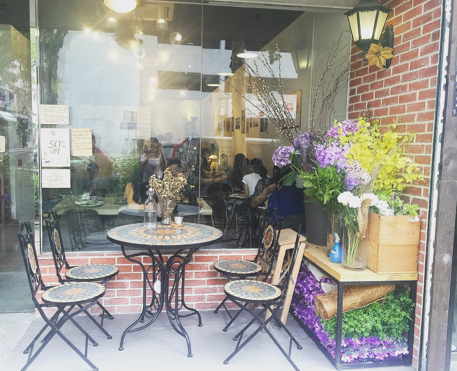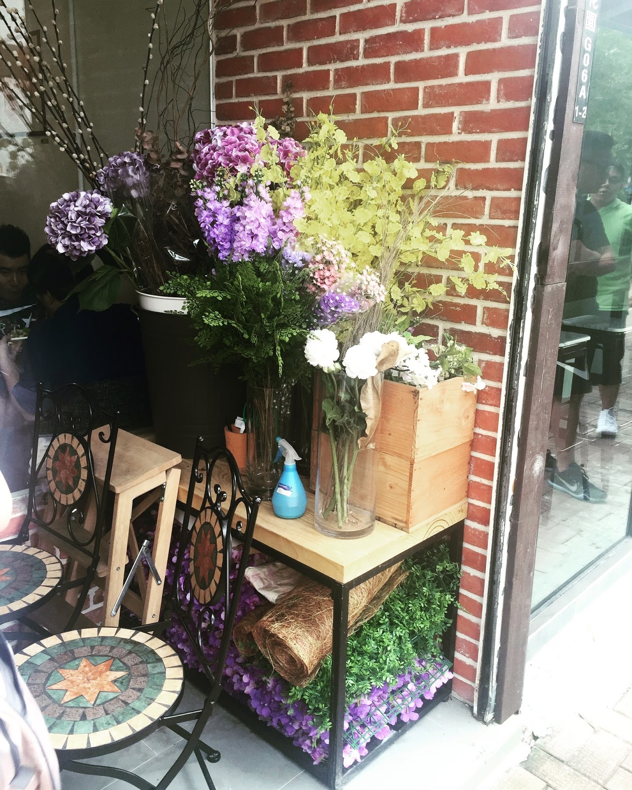 門面很美,好多花的擺設。雖然是假花。可是真的很美。
