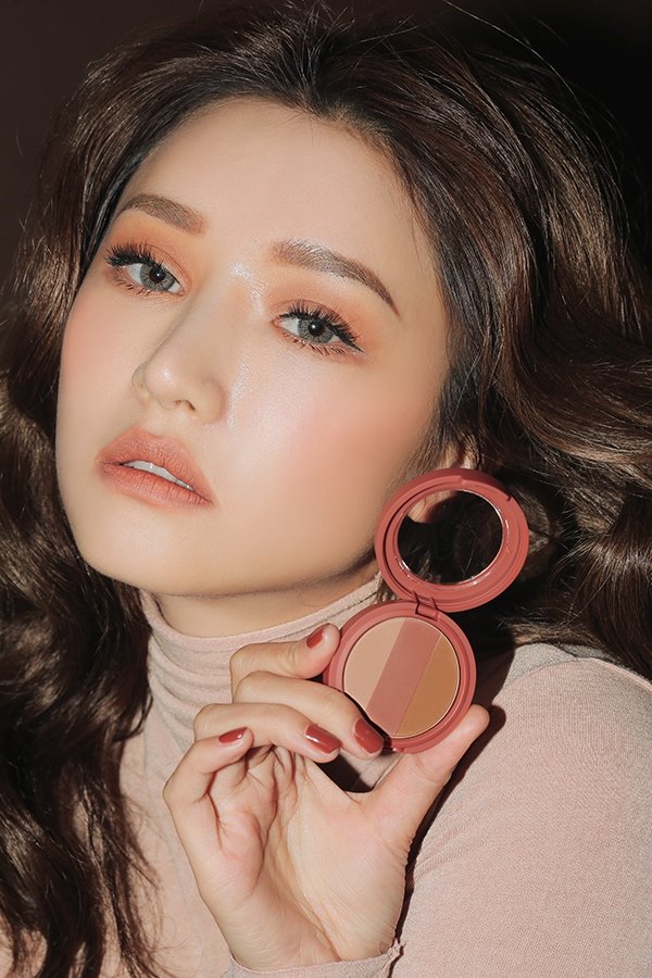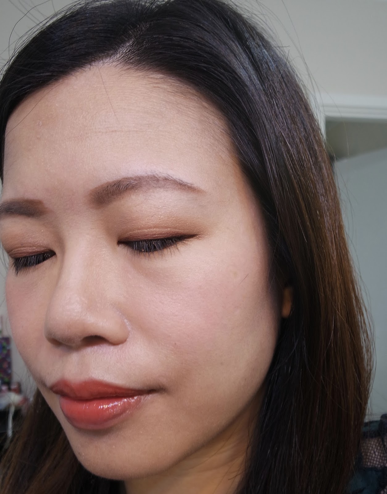 上眼皮用了啡紅色的那支。