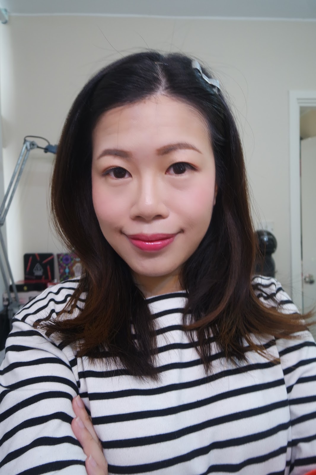 有一點鮮豔的桃粉色。也有顯白的效果。