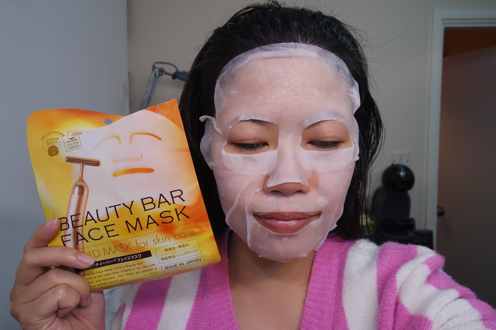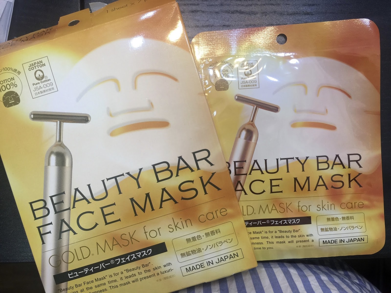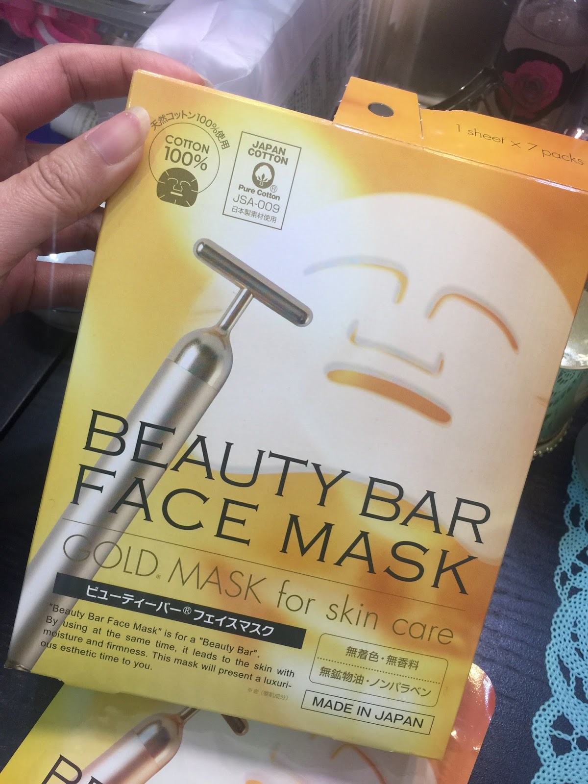 Beauty Bar Face Mask 黃金提亮緊緻面膜的主要成分有黃金、富勒烯、透明質酸、α熊果苷、水溶性膠原蛋白、加水分解膠原蛋白絲綢、米糠成分配製而成,純日本製天然棉,