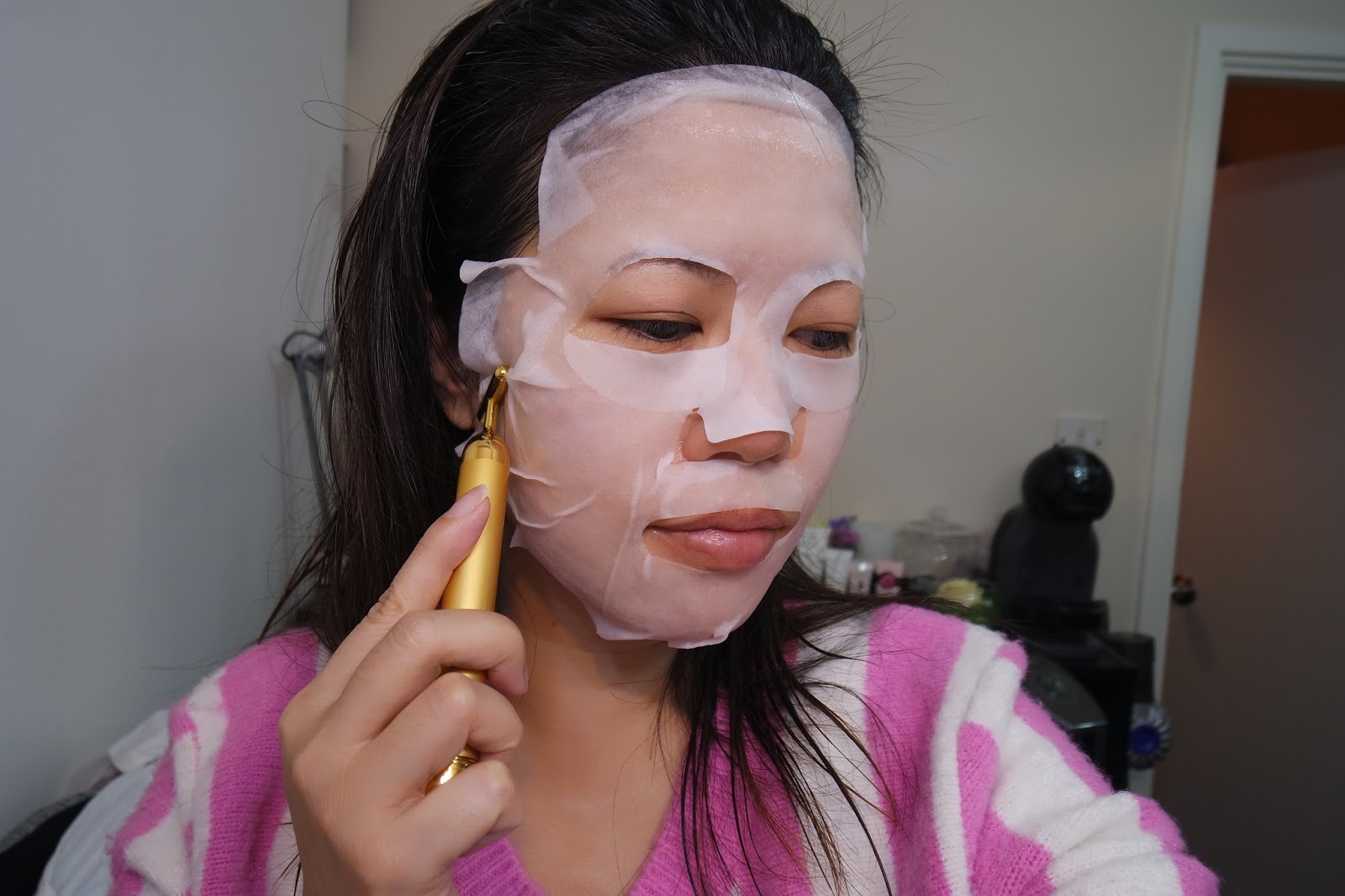 可以配合黃金棒使用,通過黄金棒高頻率震動模式快速把面膜中的精華導入至肌膚基底層細,即時提亮彈潤和緊緻。