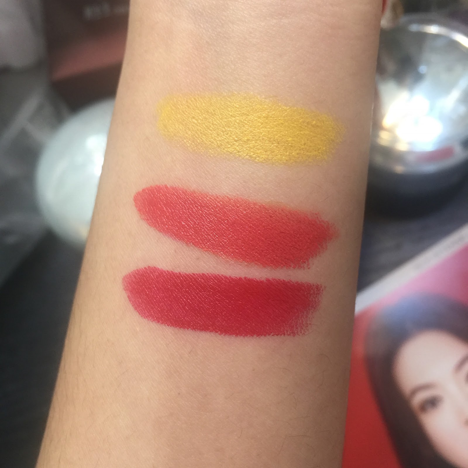 不好的地方就是。。。塗完之後的黃色唇膏沾滿了紅色唇膏。不想這樣的可以用唇掃取黃色唇膏擦上嘴。