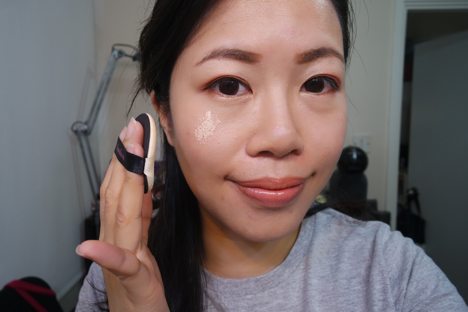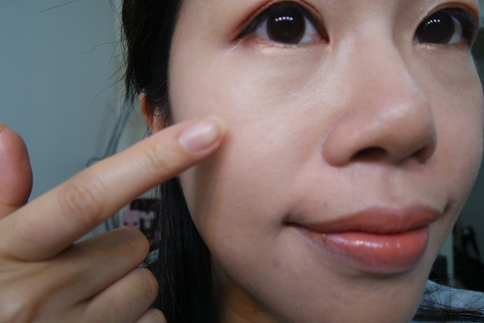我覺得它的遮瑕度很不錯。你可以看到,我只是拍打一兩下,我面上小瑕疵就遮掩住了。