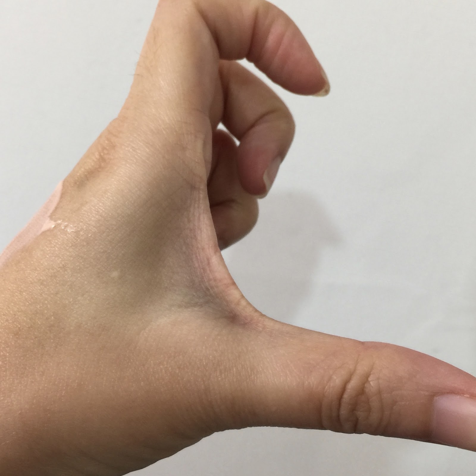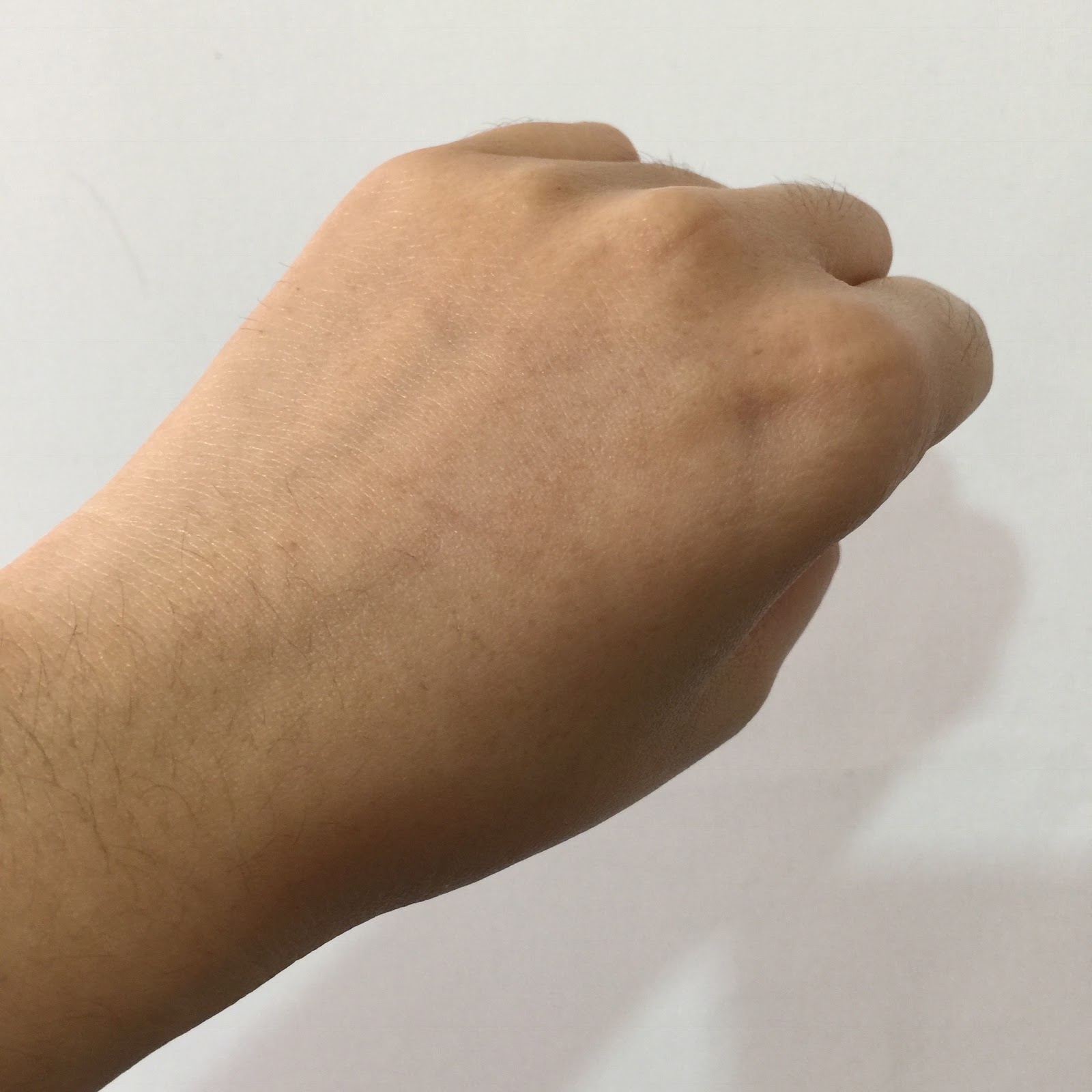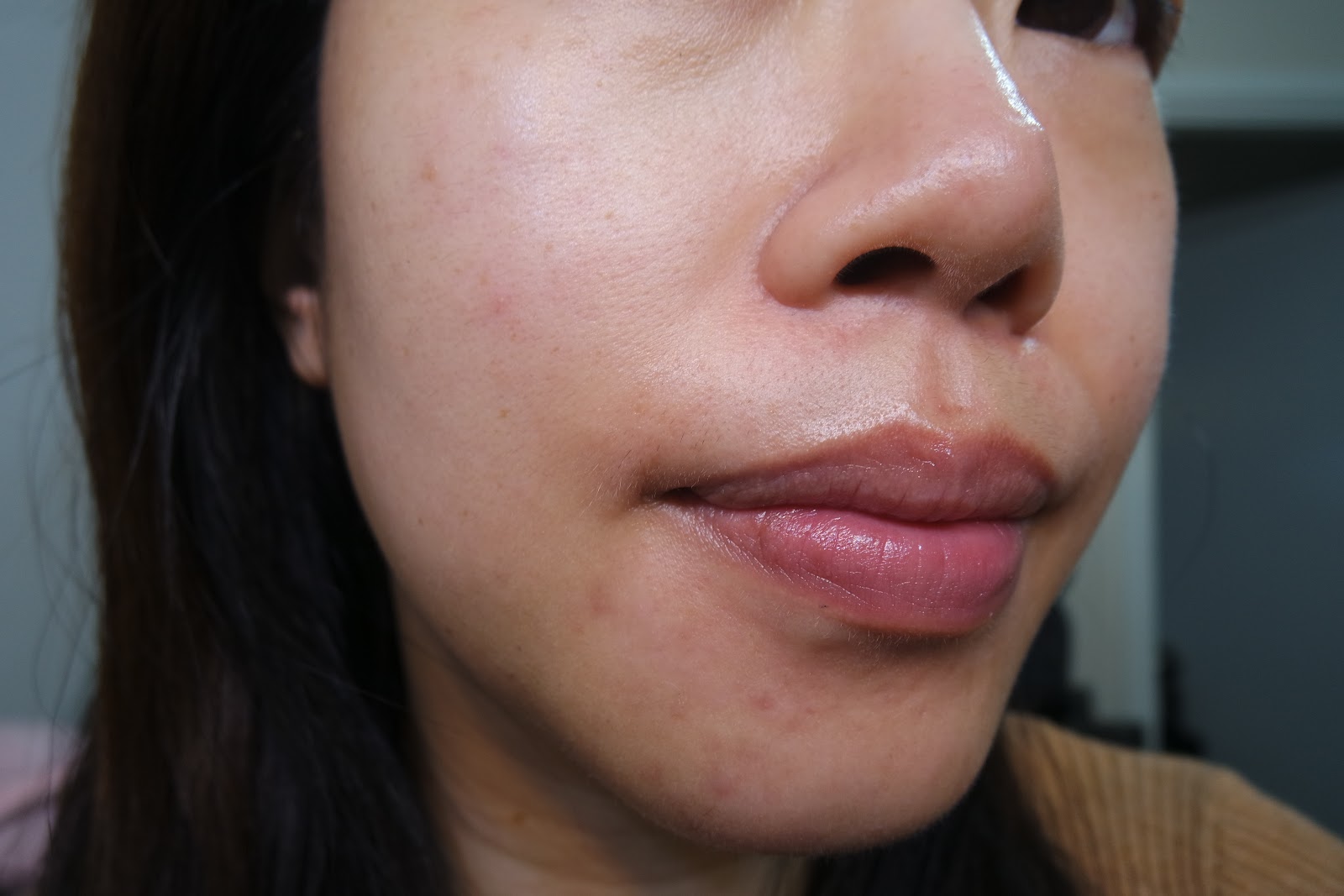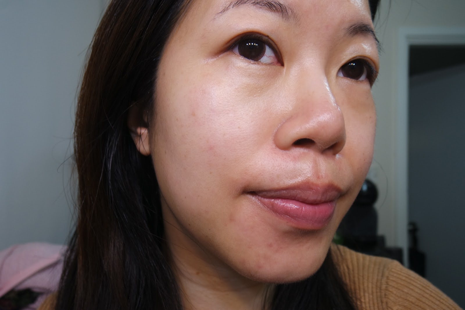 把它均勻的擦在面上。膚質是可以很清楚的看到有一種絲滑的感覺。還有神奇的是毛孔好像被模糊了一樣。