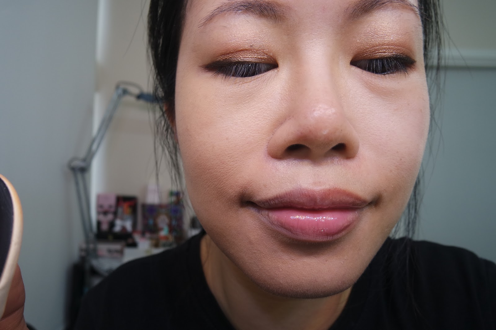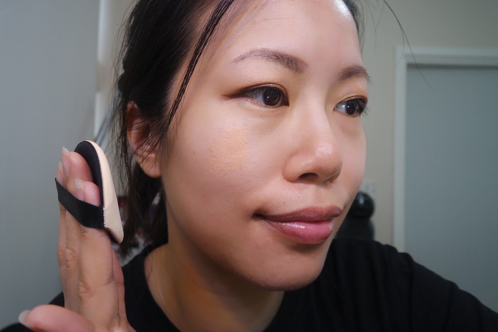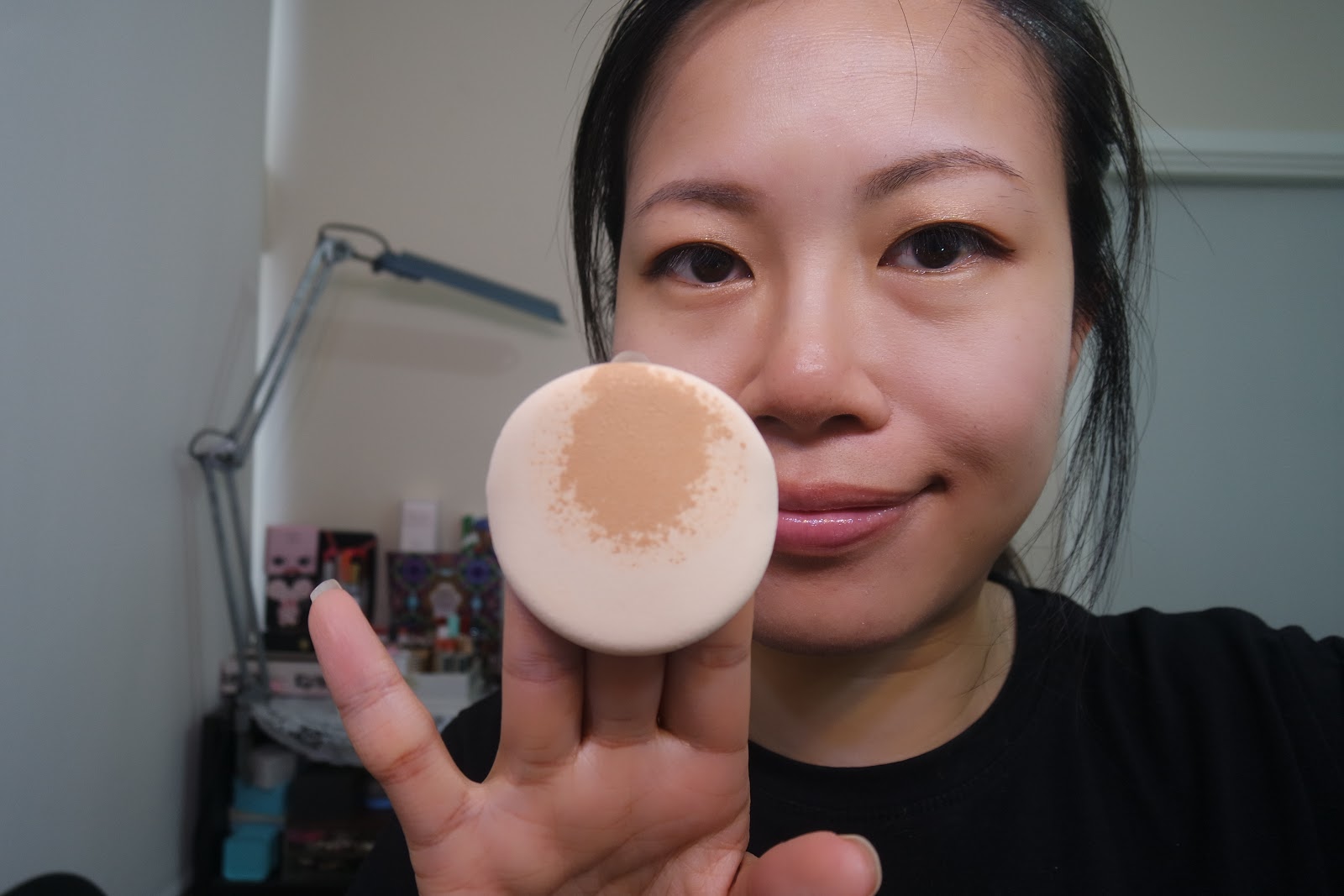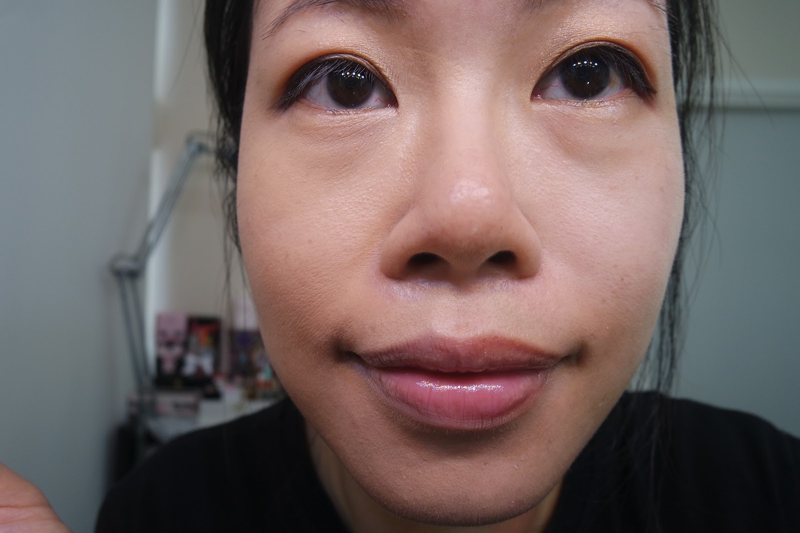 完妝了,很薄透。毛孔可以遮蓋到。膚色不均改善了。