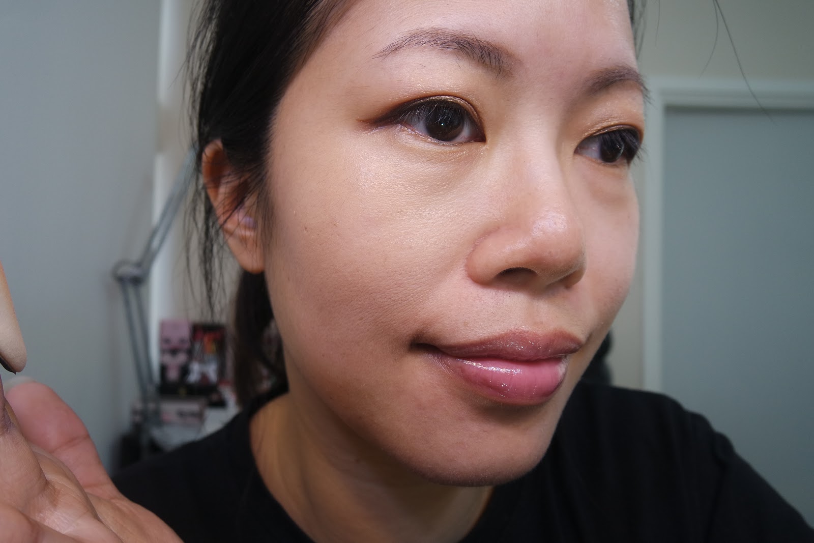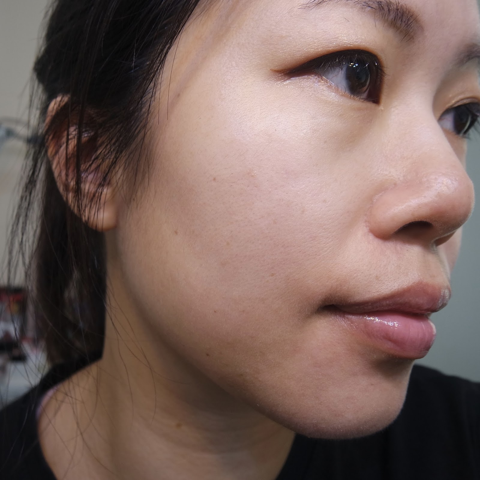 看看上了半面的效果。妝真的薄。