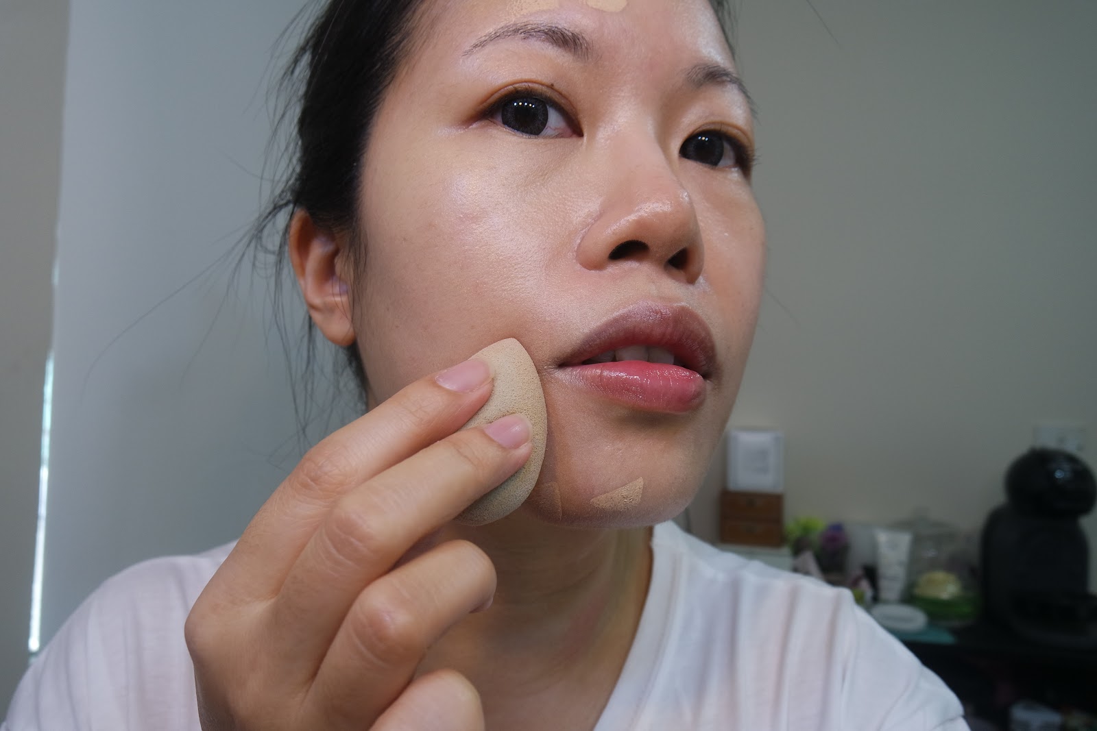 用 Beauty Blender 推開更薄。其實櫃姐建議用粉底掃的。不過我還喜歡用Beauty Blender.