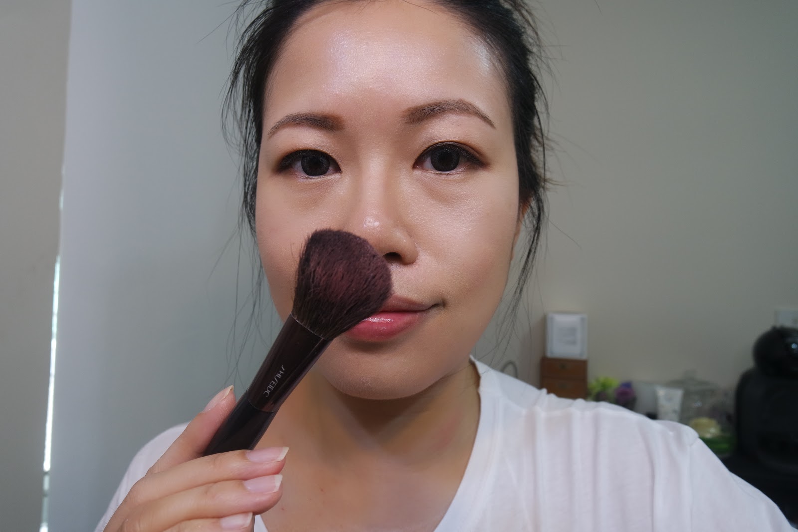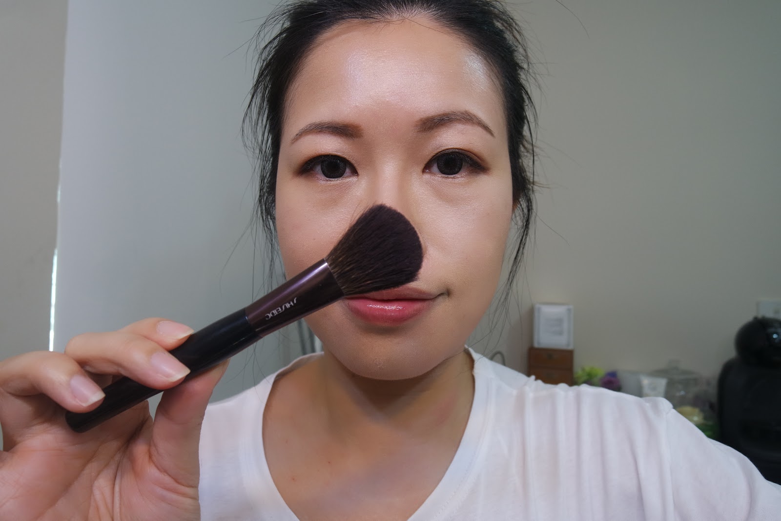 以小量多次的方法去上胭脂粉就不怕變得太紅或是不均勻。掃在這個位置。
