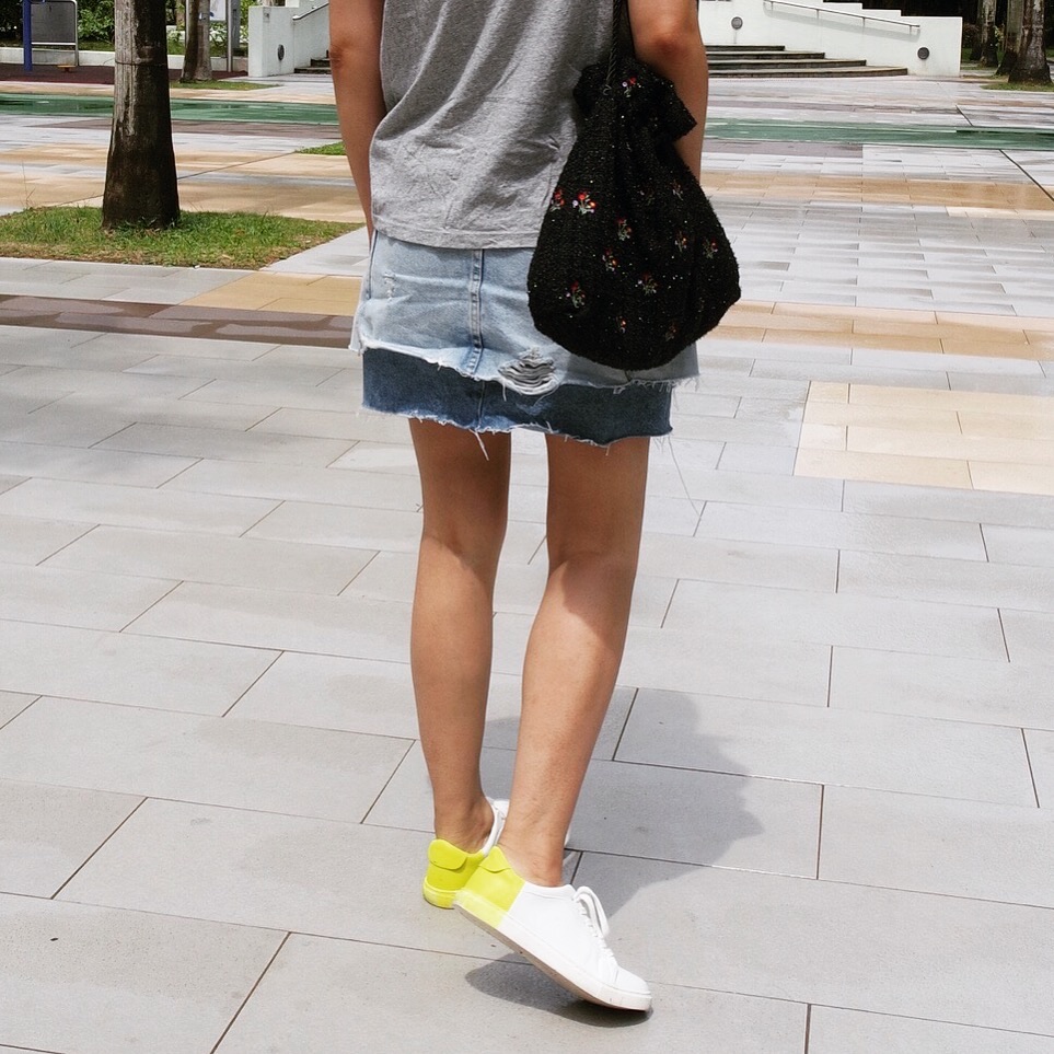 熒光黃色的球鞋也是ZARA的出品。