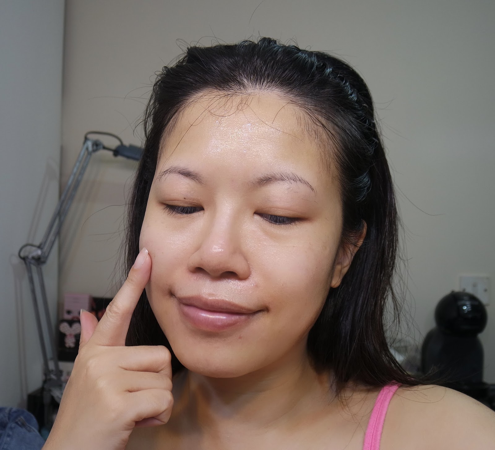 保濕款拿下後,還有很多的保濕精華在面上,可以按摩一下讓它更吸收。