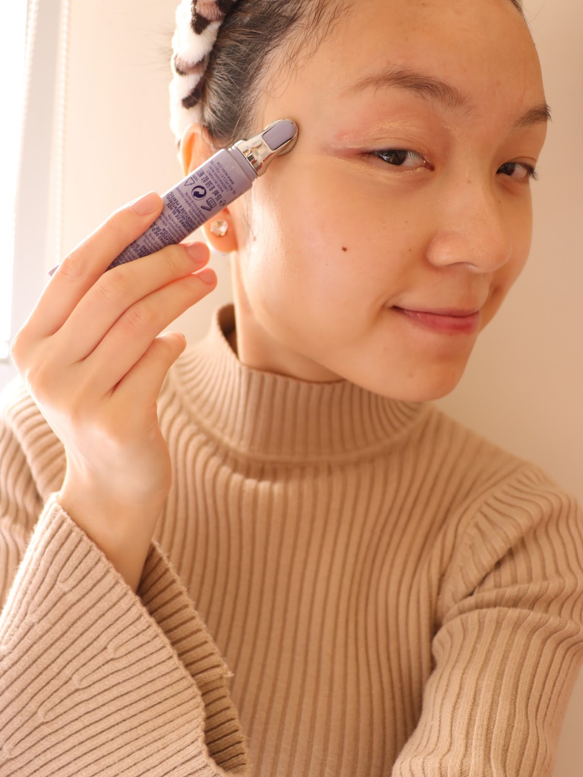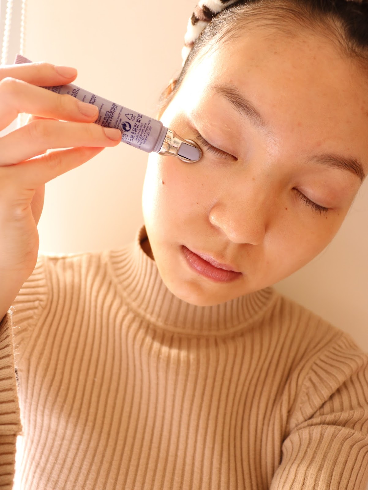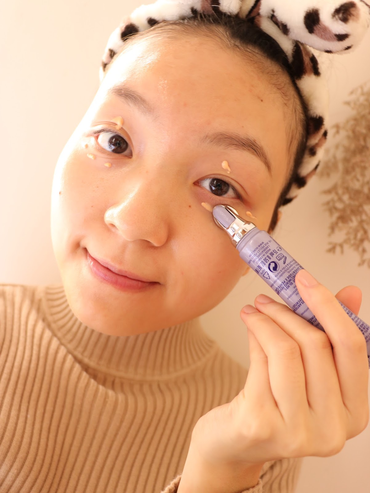 有助提取適當的眼霜份量,當輕觸眼周的肌膚,