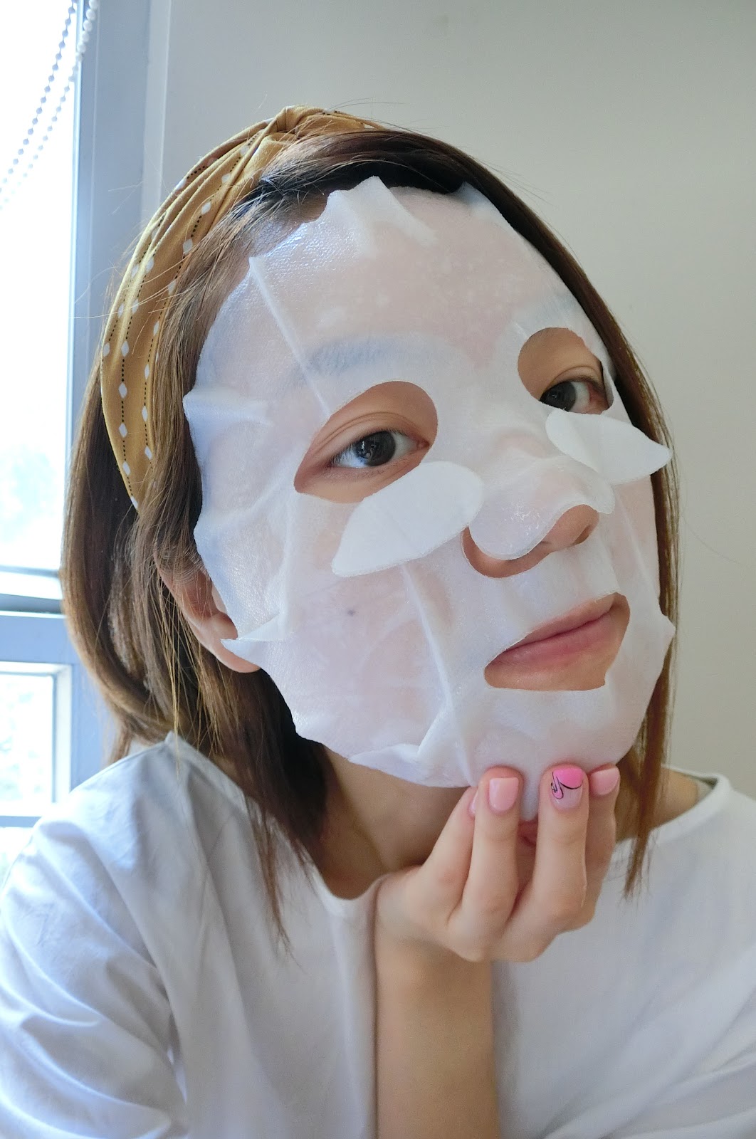 把面膜敷在面上,調好位置