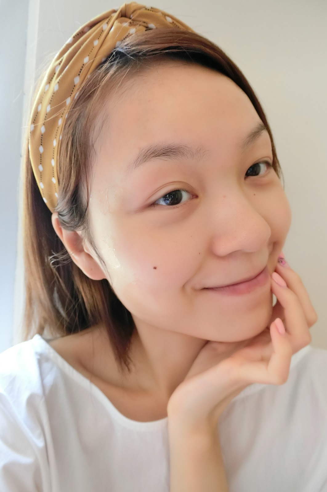 約20至30分鐘撕下面膜,隨即見到肌膚潤潤,還釋出光澤