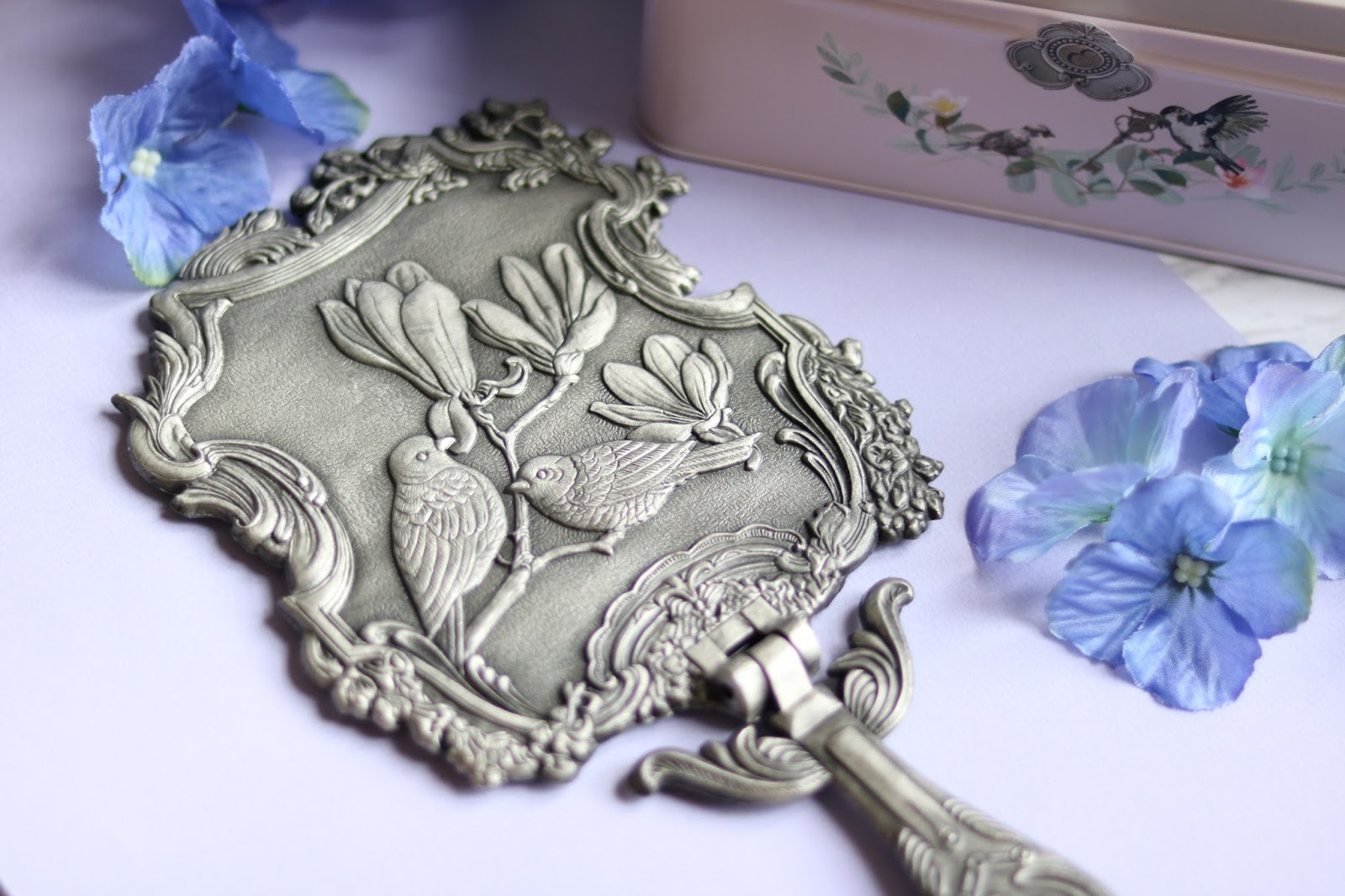 鏡背優雅漂亮,亦設有底座,可以擺在枱面上使用。