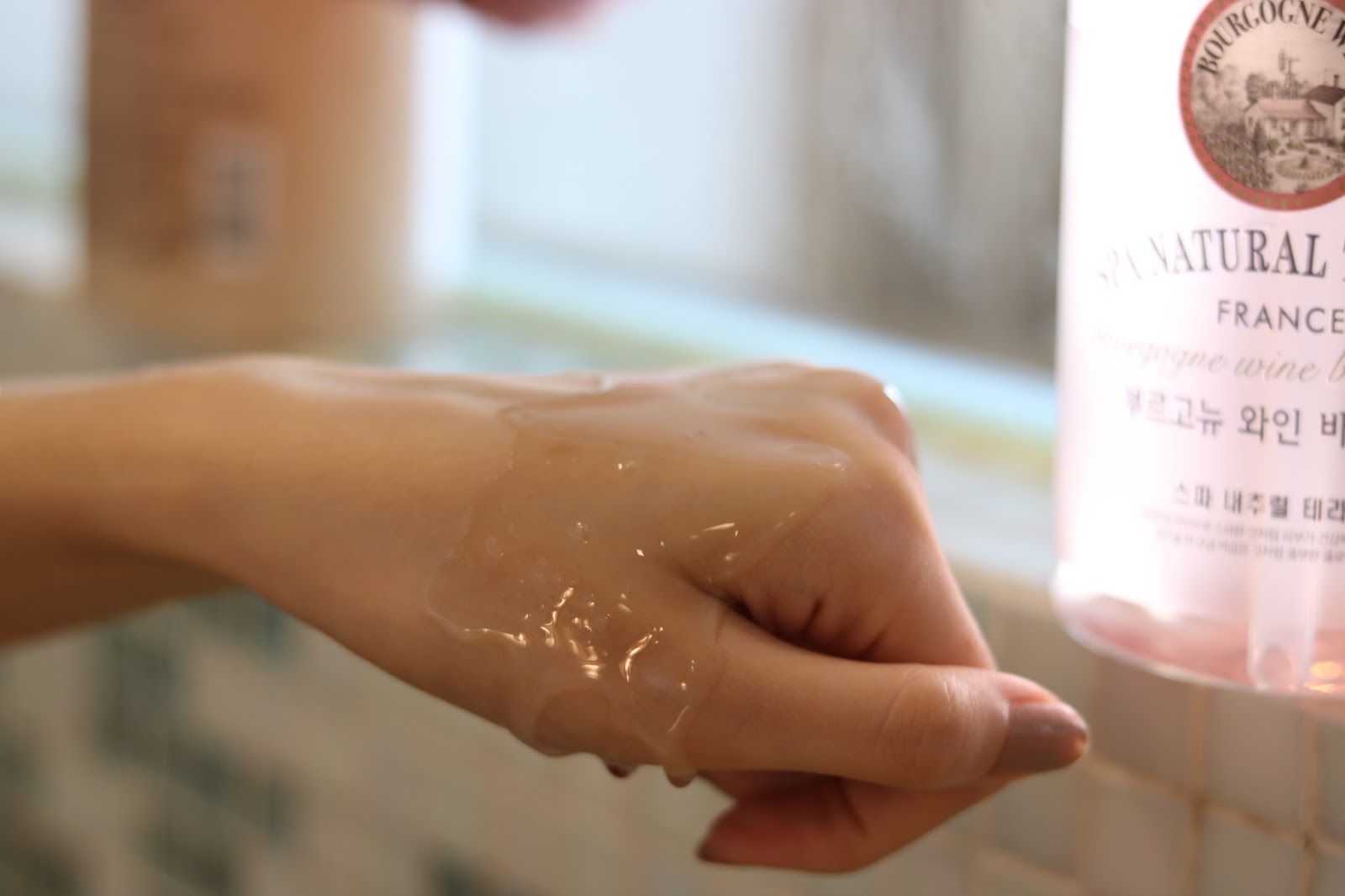 法國紅酒沐浴露,粉粉的樣子,含有法國紅酒成分