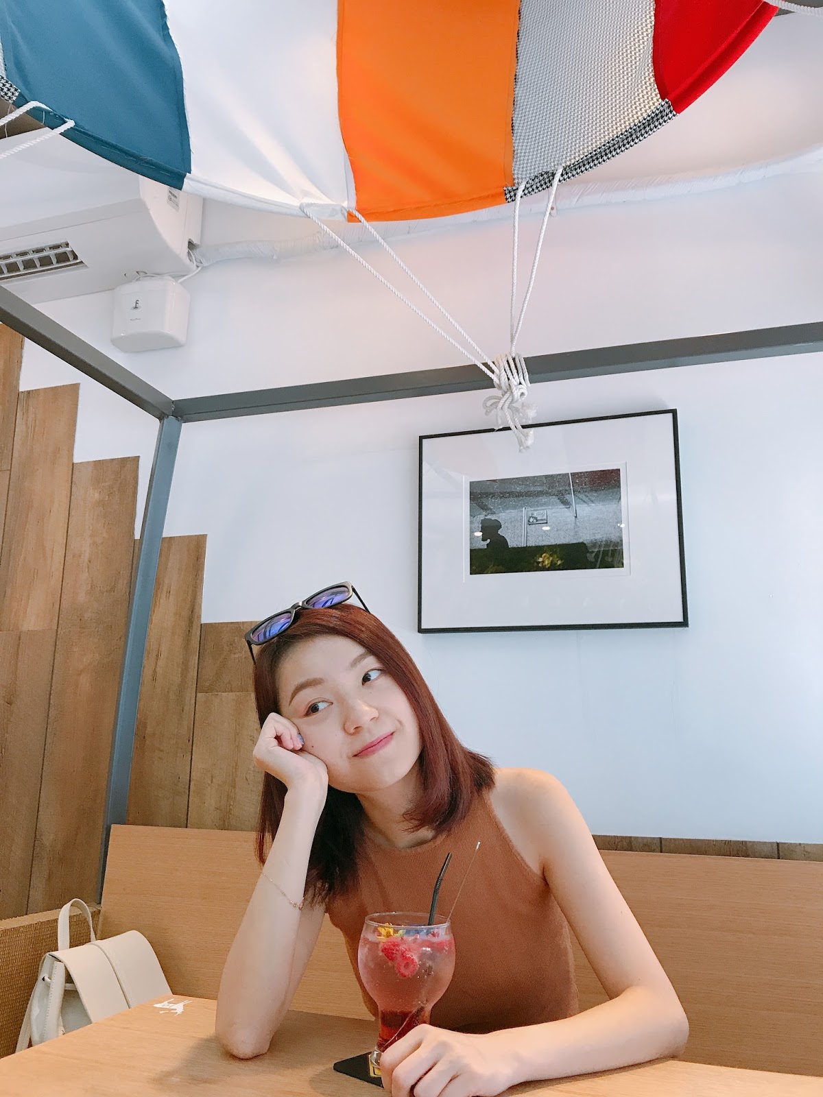 餐廳內的確有一個彩色熱氣球裝飾的座位