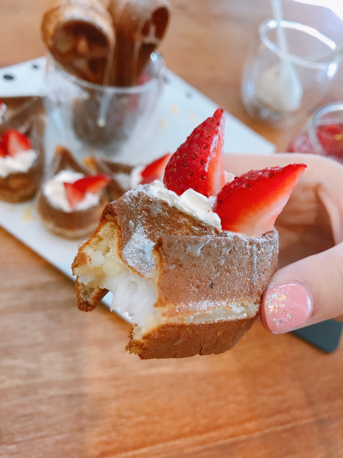 草莓煉乳麻糬鬆餅佐巧克力冰淇淋 NT200