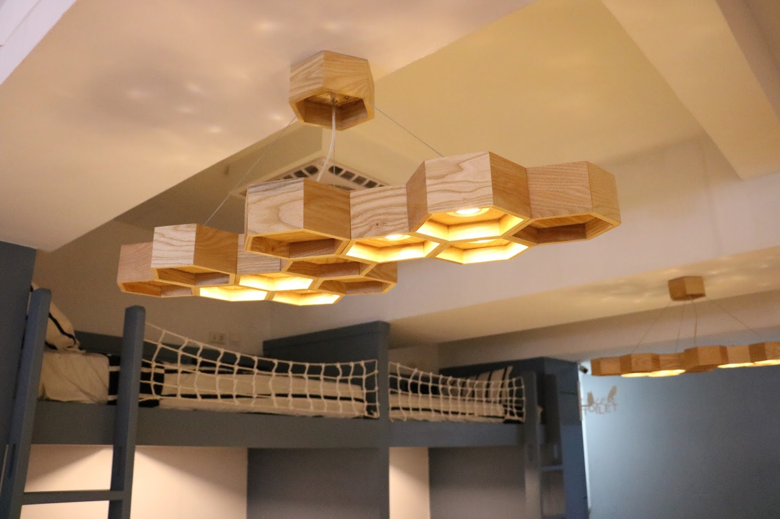 除了熱氣球裝飾之外,餐廳裏面還有碌架床