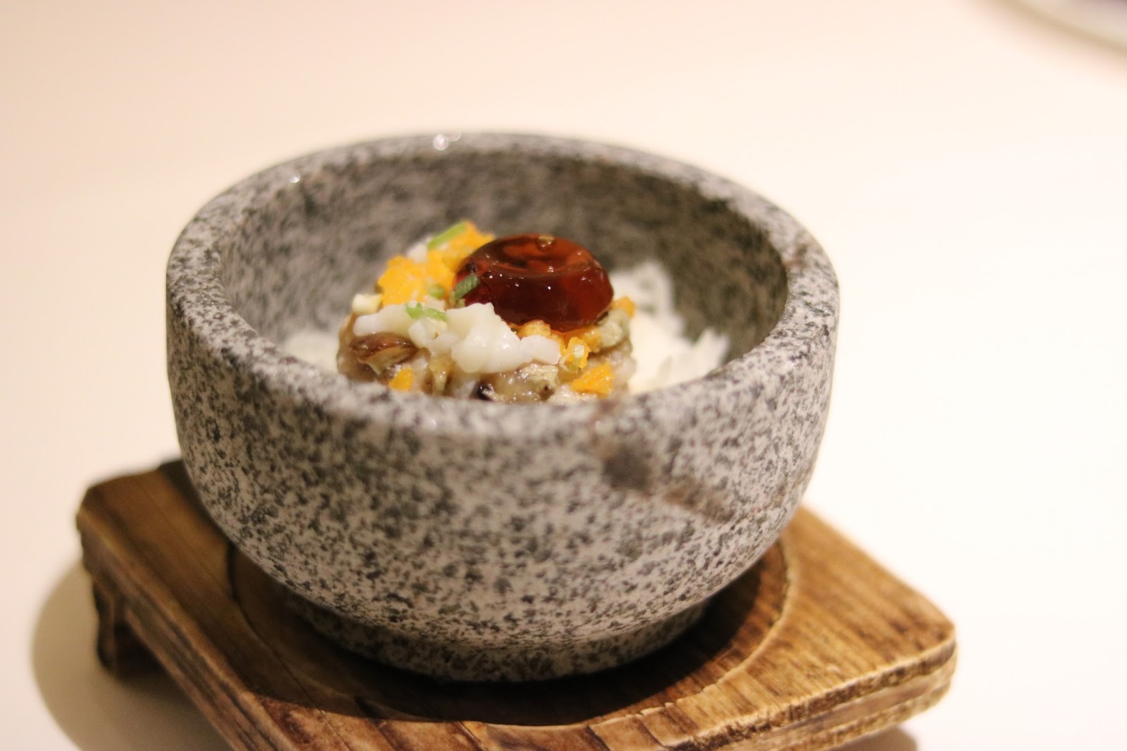 表面看似是鹹蛋黃,其實是由分子料理技術製成的肉汁,