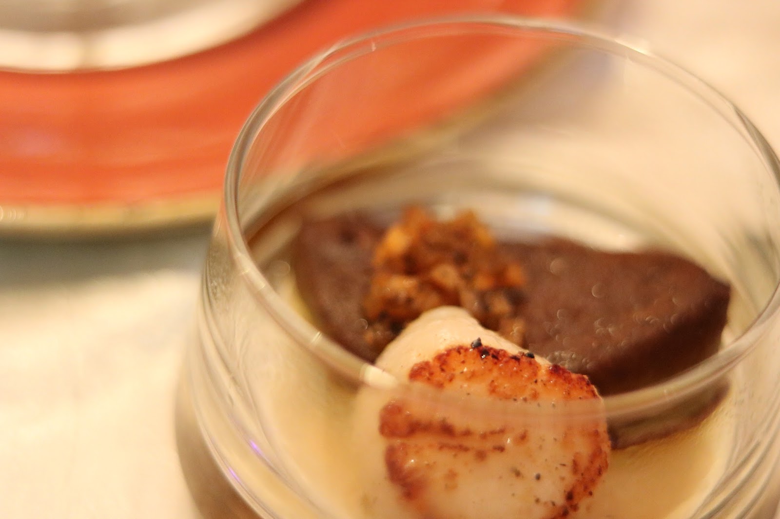 香煎帶子拼慢煮鴨肝配黑胡椒蘋果醬