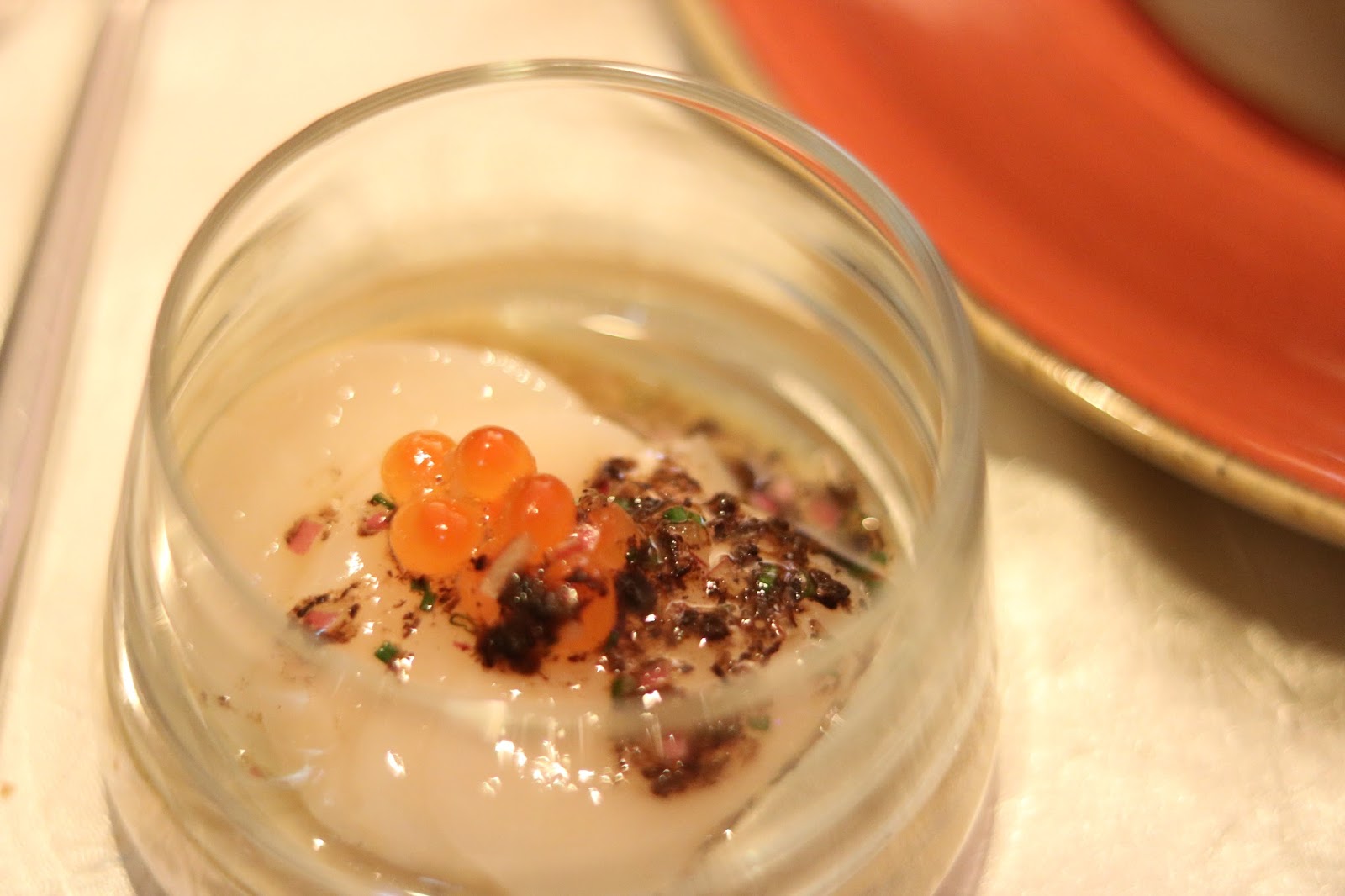 晚餐先上的是帶子三重奏,以三層玻璃瓶盛載,蠻特別的