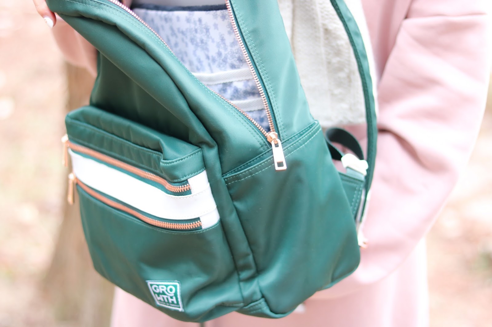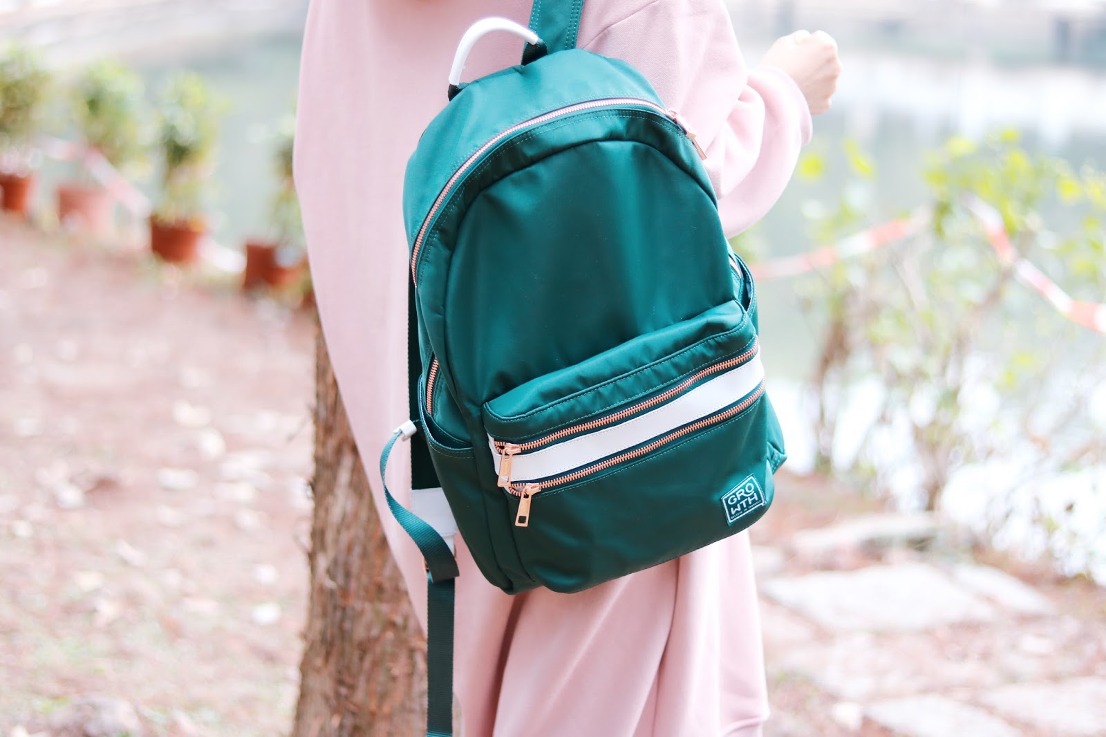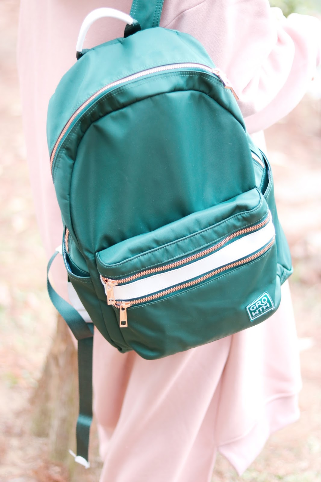 蝴蝶結姐姐在選擇困難症底下就揀選了一個深綠色絹布大背包