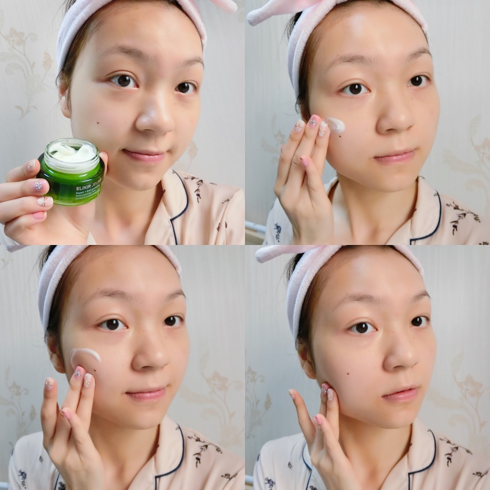 爽膚水後,取適當份量,塗抹全面和頸項,