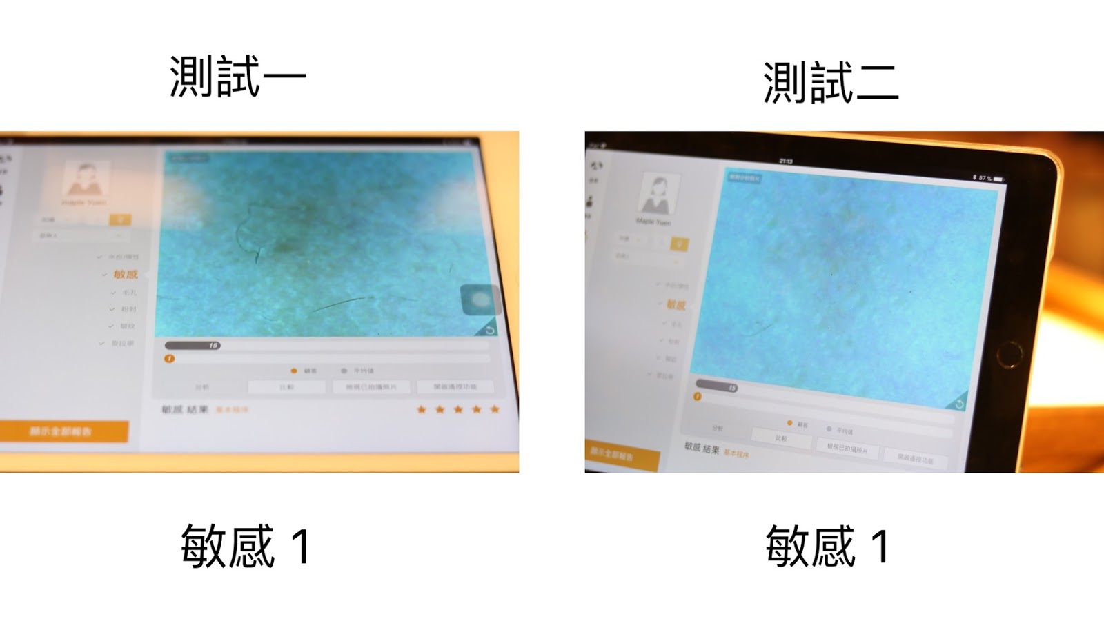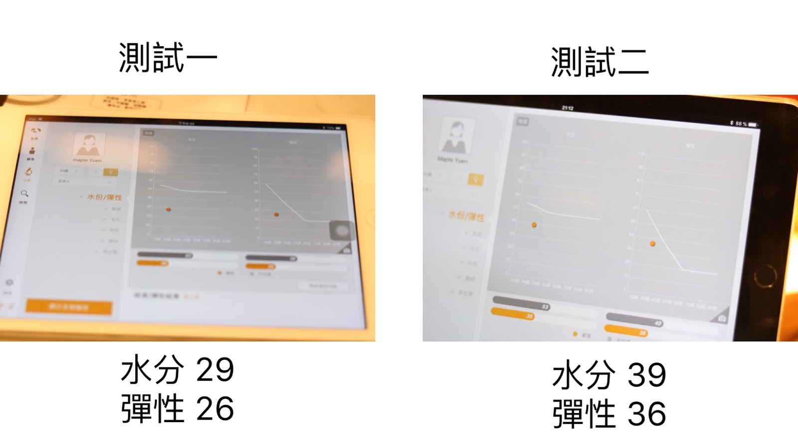 做第二次皮膚測試後,測試證實肌膚各方面都有所改善呢!