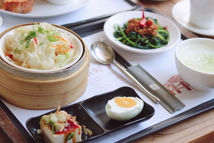 而老公卻點了一份中式早餐,幾碟小菜蠻精緻的。