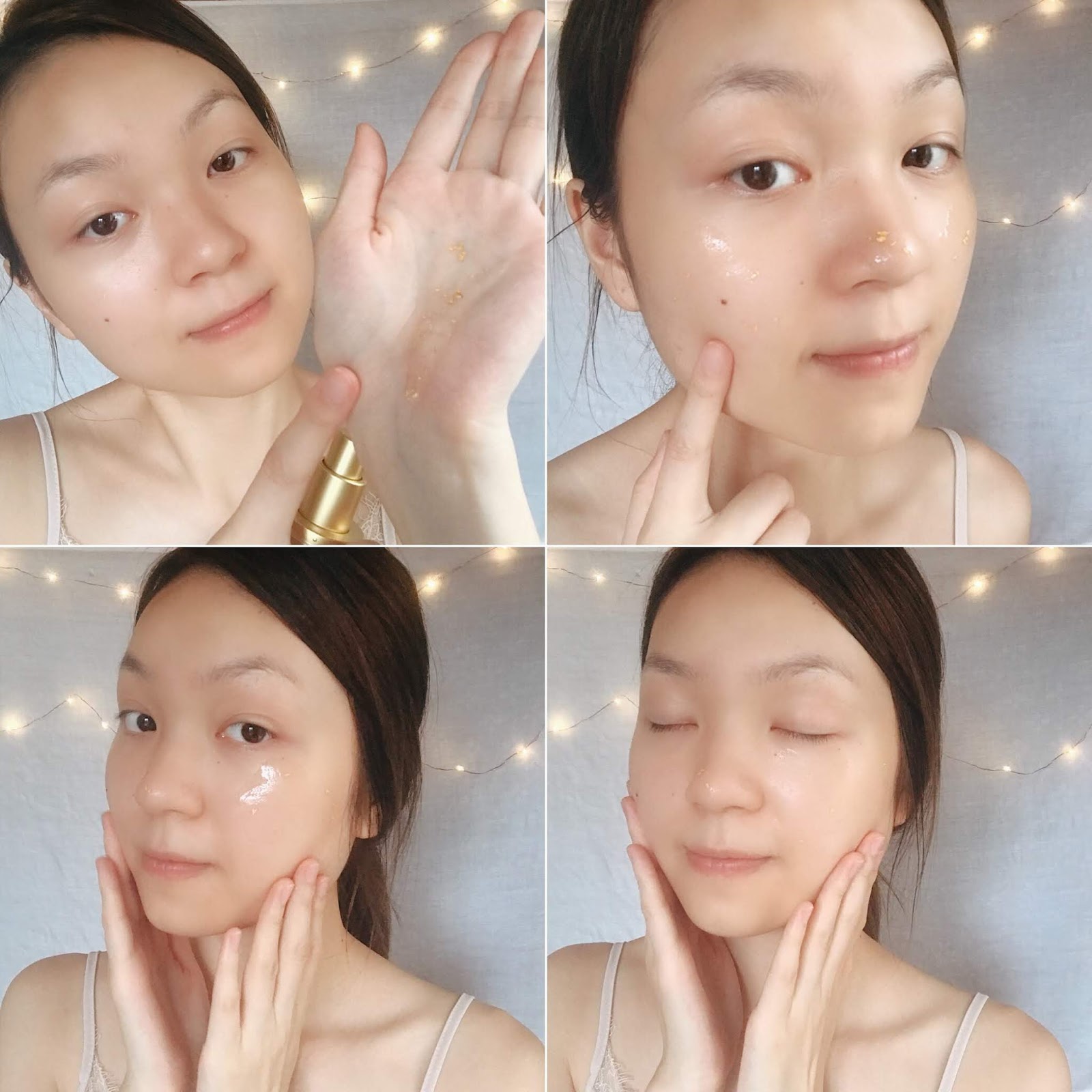 完成爽膚水步驟後,就使用「金箔精華素EX」