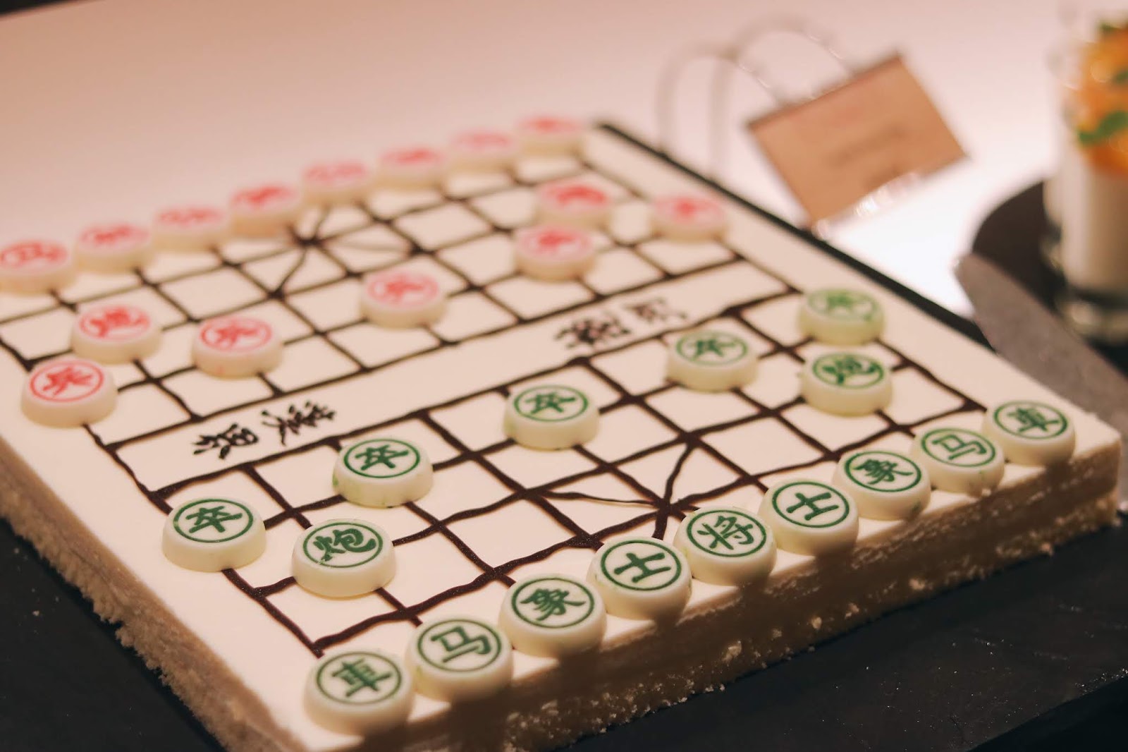 像真度高的「波子棋造型士多啤梨慕絲蛋糕」及「中國象棋造型白朱古力慕絲蛋糕」