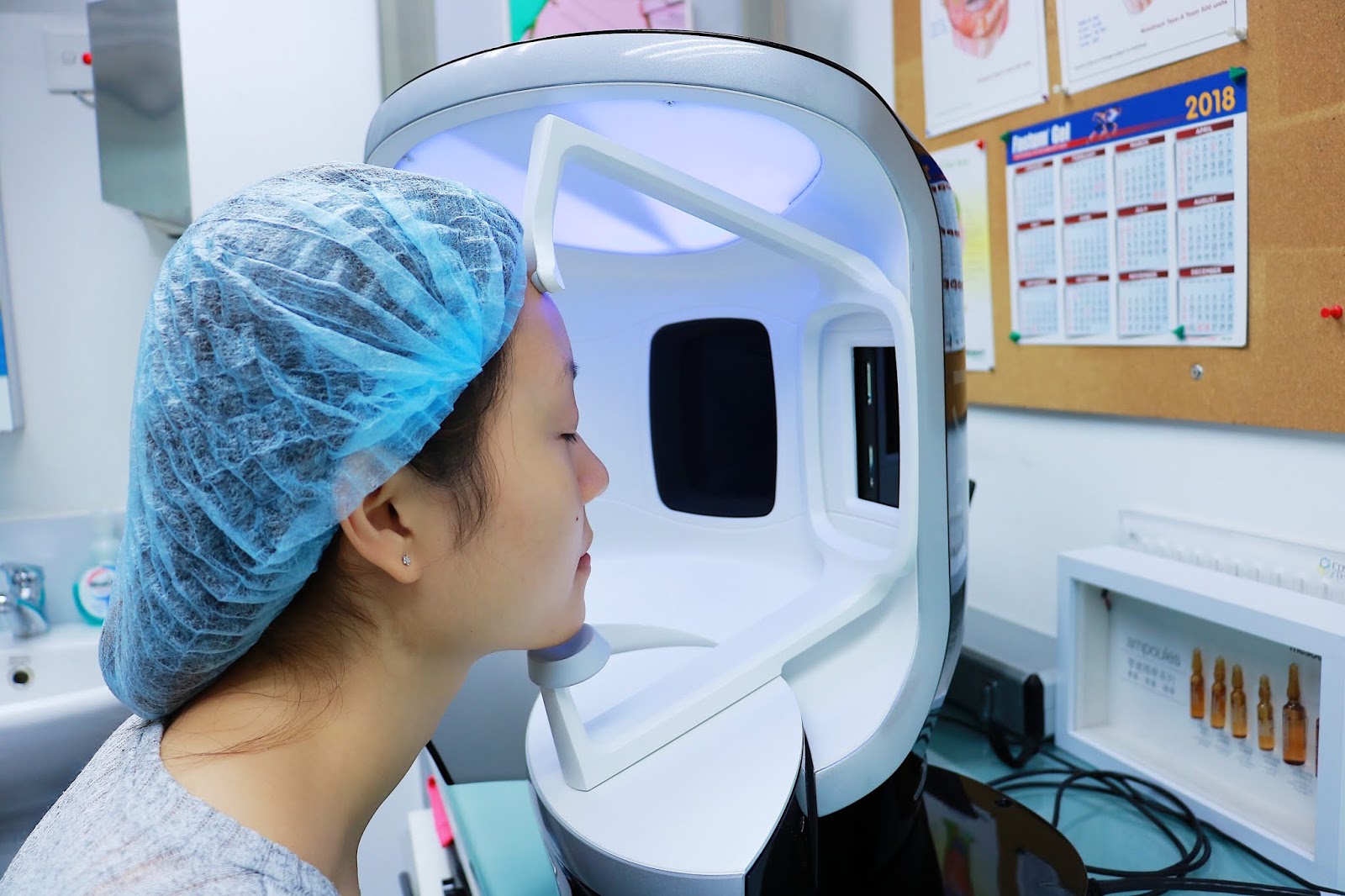 透過3D掃瞄器,能夠清晰顯示及計算到皮膚的色素、細紋、膚質等。