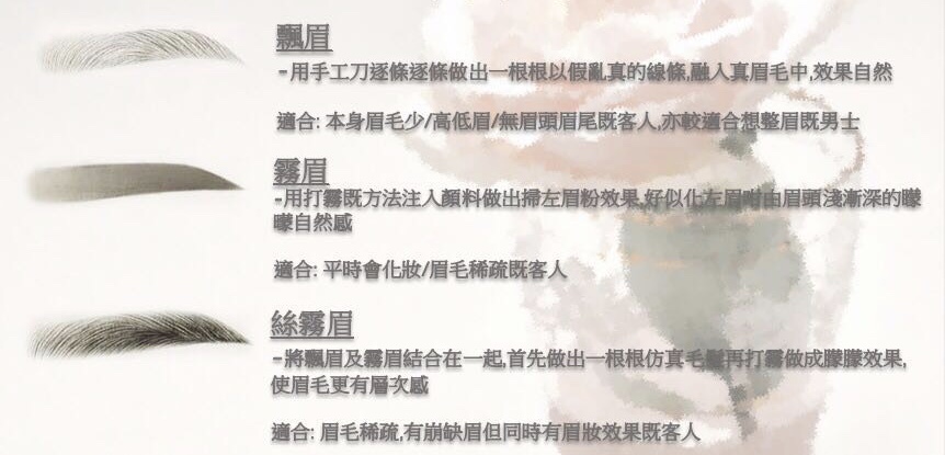 霧眉$1600 (原價$2500)/飄眉$2000(原價$2800)