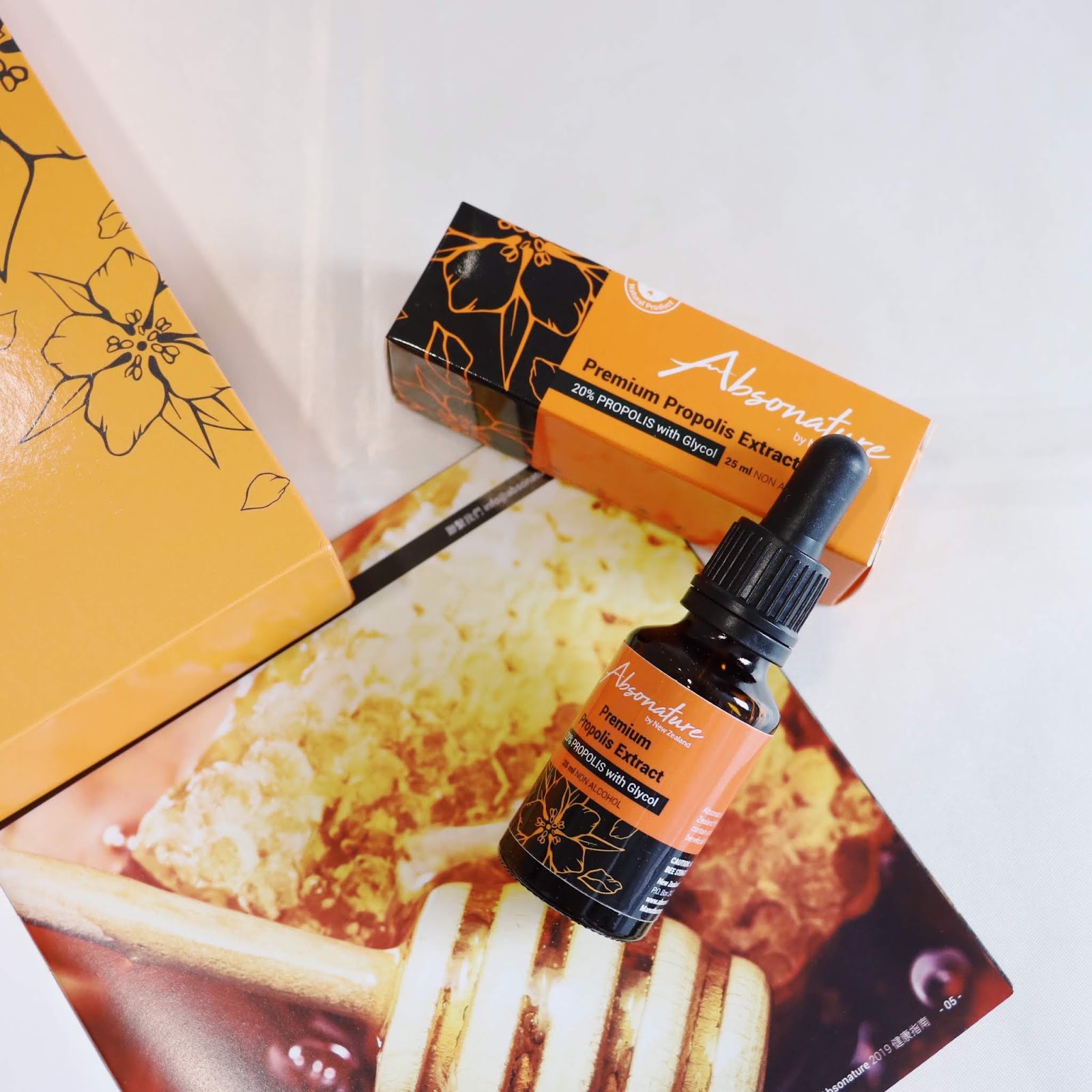 此外,Absonature 還有另外四款天然產品,頂級蜂膠滴劑,純天然強力蜂膠,含有至少九種不同的有益黃酮類化合物,在喉嚨不適或者感冒時服用二至三滴,能增強免疫力且加快痊愈,真是很有用。