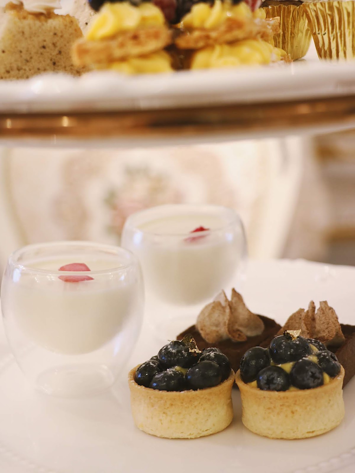 第二層分別是軟心朱古力撻、藍莓撻、意式奶凍,濃度各不相同,香甜而不膩。