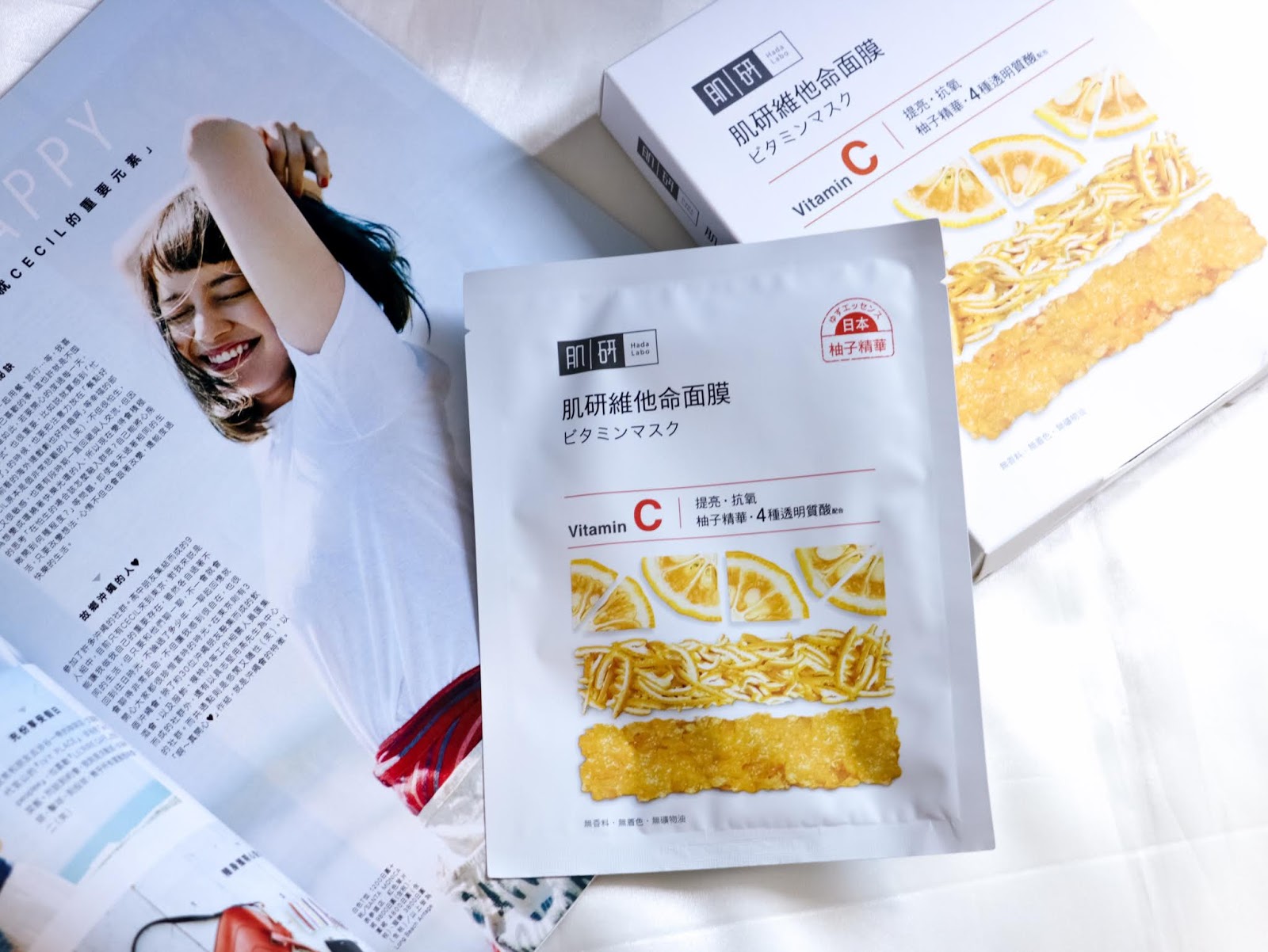 維他命C面膜,萃取自日本柚子精華, 可改善暗沉肌膚,提升亮澤度。
