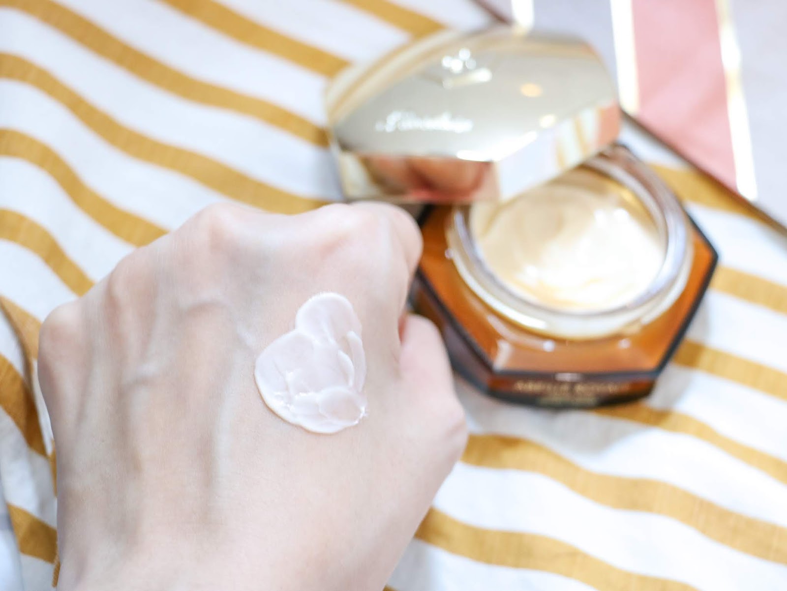 精華後,我會使用GUERLAIN 緊緻晚霜,蜂巢設計很精緻可愛,晚霜透過黑蜂蜜修護科技以及結合大量維他命E,為肌膚注入營養,令肌膚變得彈滑緊緻。
