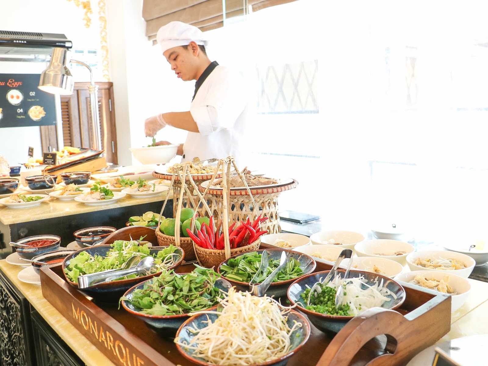 至於早餐是自助餐形式的,食物品種非常豐富,多數以越南特色為主,有沙律、麵包、湯麵、生果、甜品等等。而服務員亦收拾餐具快速,且有禮貌。