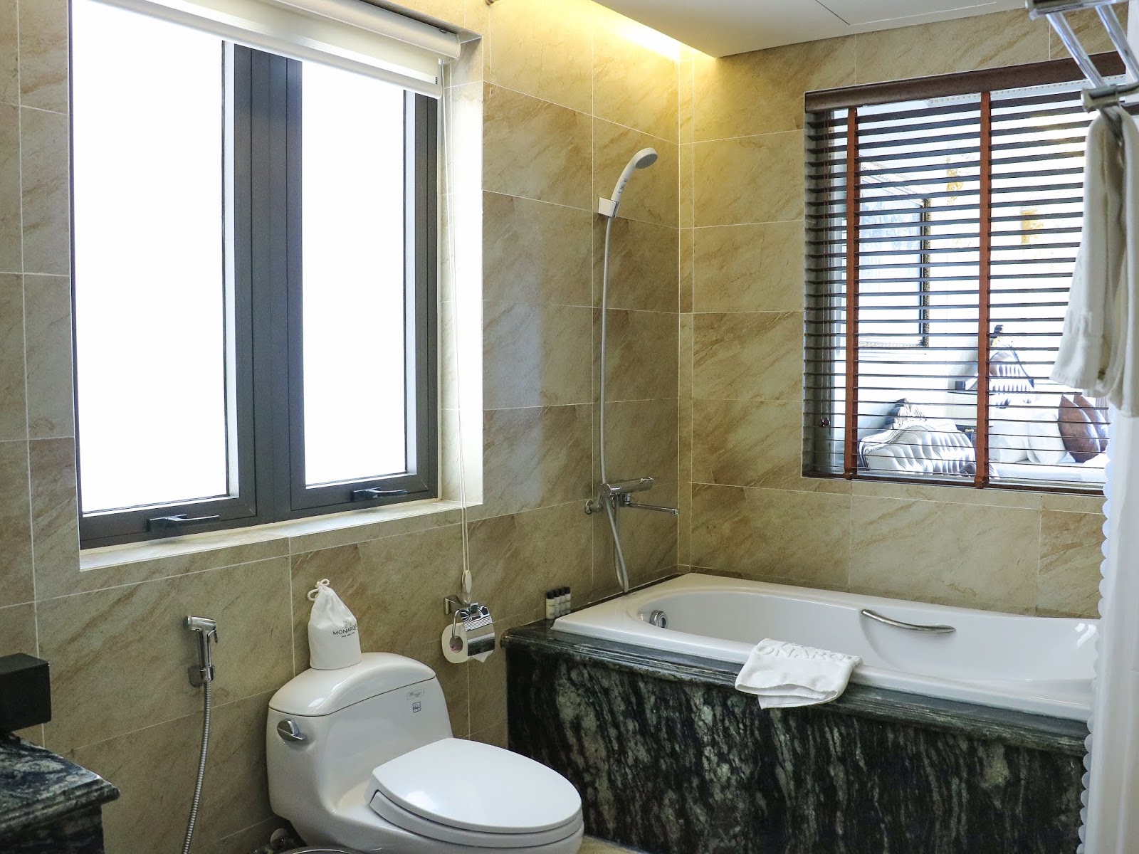 而浴室的空間亦很寬敞且有浴缸,這是我每次旅行時揀酒店必備的,因為行完一日,可以泡腳消除腳步疲勞。唯一缺點是在浴缸沖涼時,水花很易濺到地面,要小心地滑。