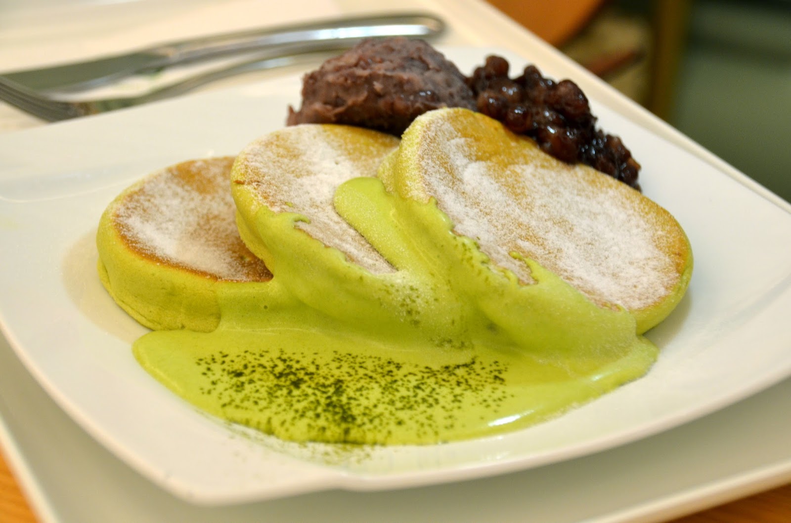 最近融化一堆少男少女的宇治金時鬆餅,厚厚的鬆餅,灑上白色糖霜粉末,紅豆泥與紅豆粒,最後淋上那濃濃的抹茶醬,呈現出的美感讓你不知從何下手破壞這美麗的畫面