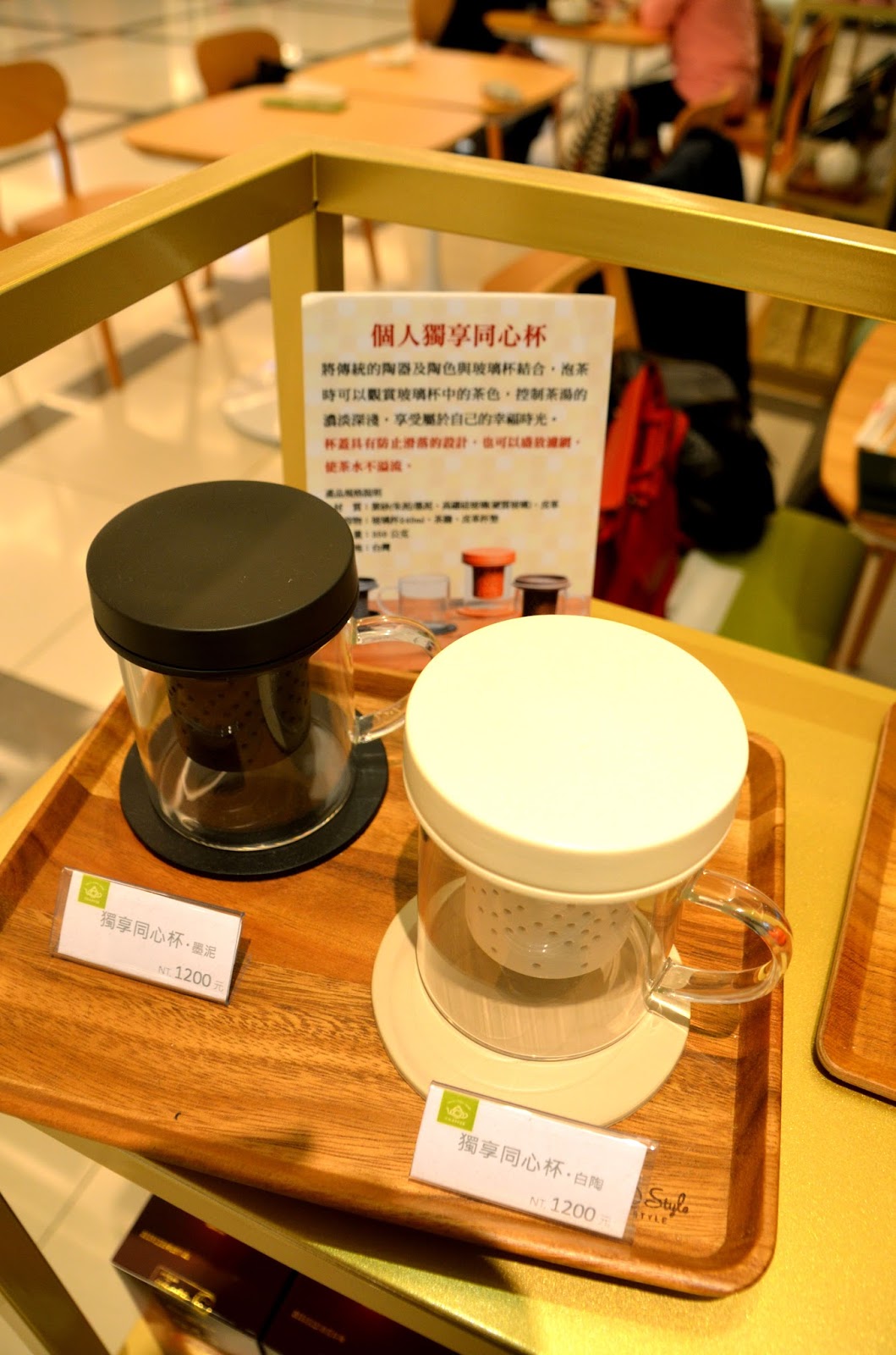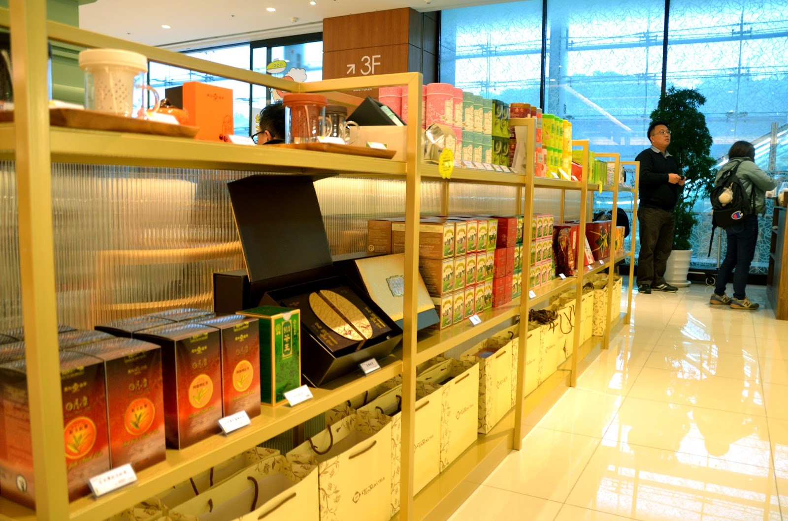 櫃台後面是包裝茶與泡茶器具的陳列販售櫃