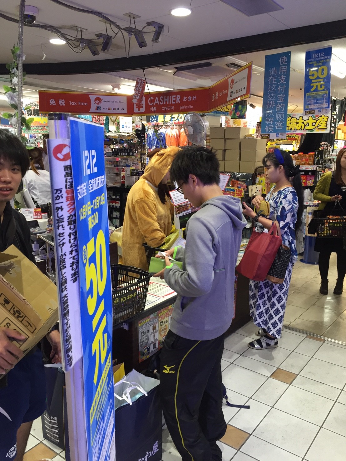 驚安殿堂就在星巴克斜對面,招牌很顯眼